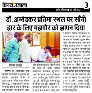 ज्ञात रहे साँची द्वार की प्रतिकृति के निर्माण की मांग डॉ. अम्बेडकर युग सेवा समिति द्वारा 16 मार्च 2024 को महापौर जी से की गई थी ।