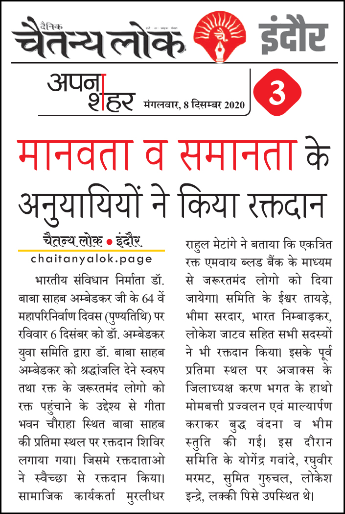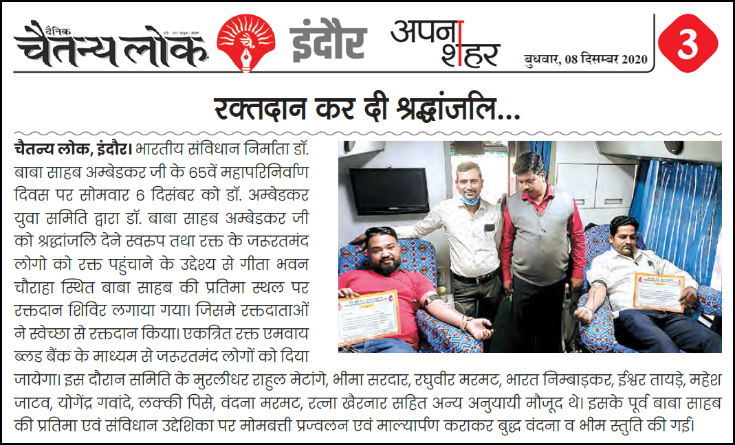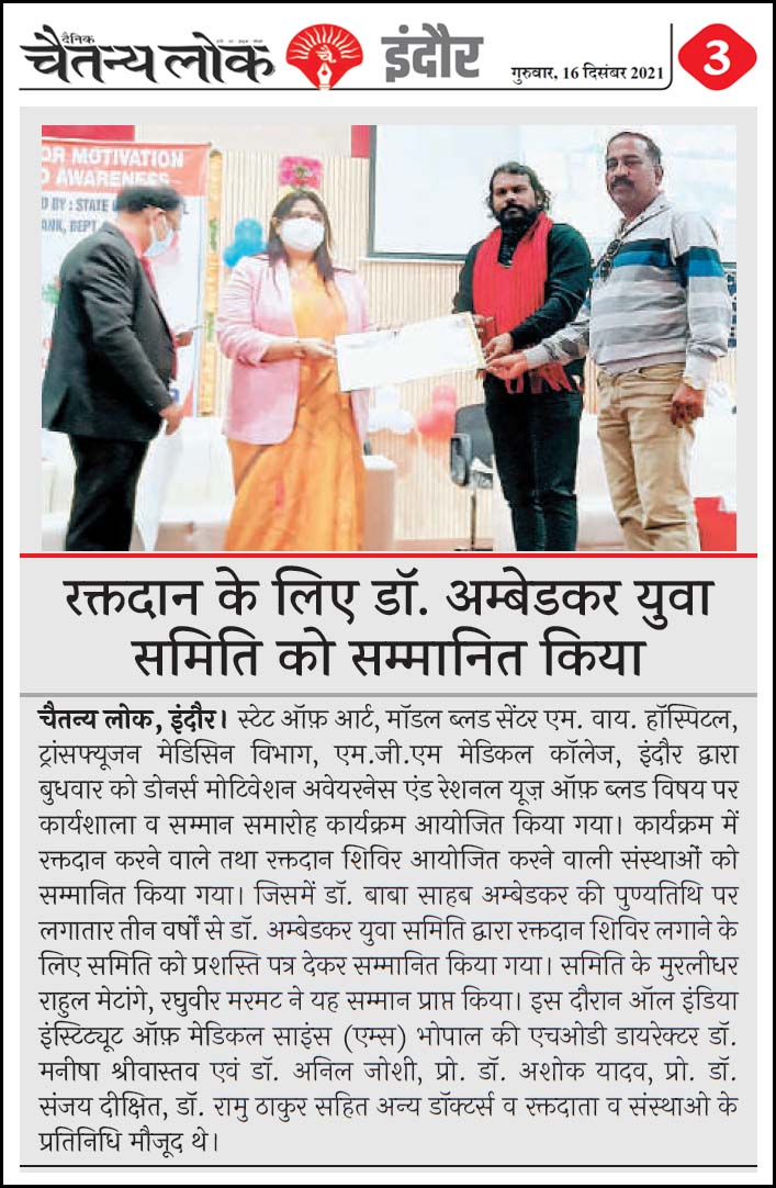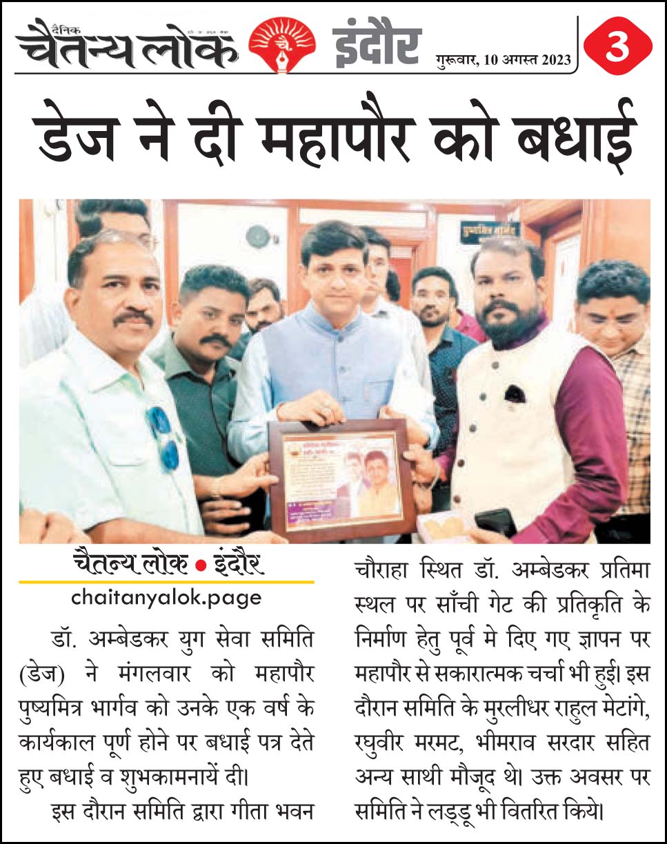 डॉ. अम्बेडकर युग सेवा समिति (DAYS), इंदौर – म.प्र. एक सामाजिक संगठन है, जिसका गठन अप्रैल 2016 में किया गया । समाजसेवा के क्षेत्र में समिति अपनी एक अलग पहचान रखती है | गठन के समय समिति का नाम “डॉ. अम्बेडकर युवा समिति (DAYS)” रखा गया एवं 14 अप्रैल 2023 में समिति का नाम परिवर्तन करके “डॉ. अम्बेडकर युग सेवा समिति (DAYS)” किया गया ।
