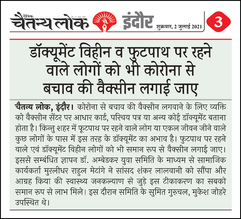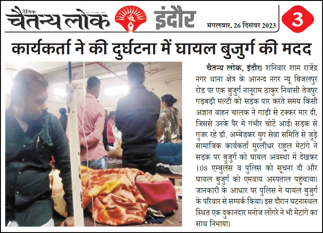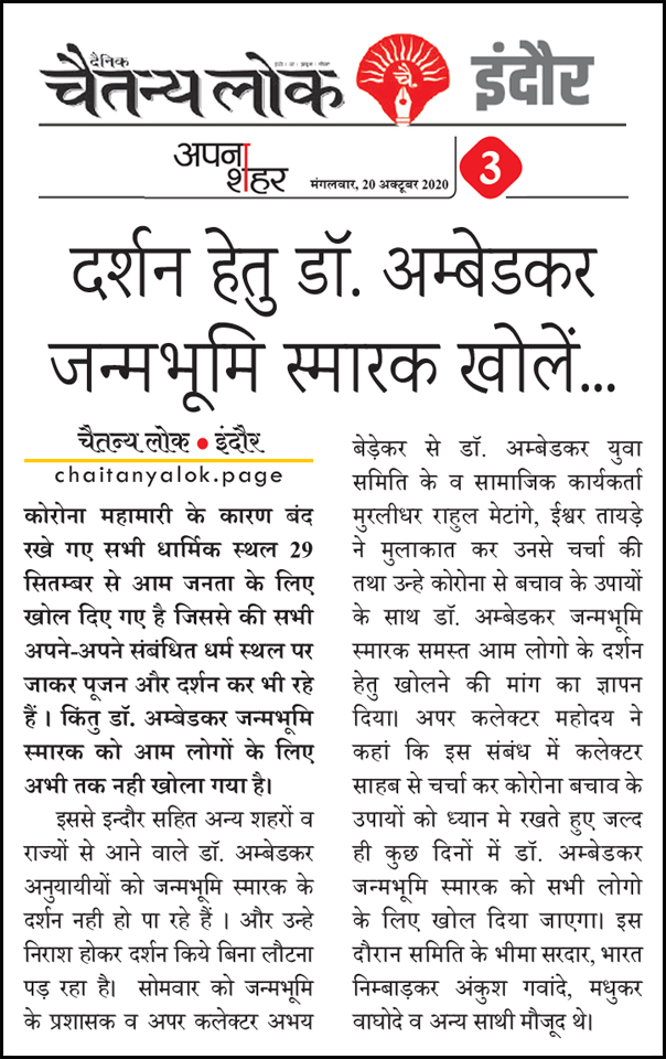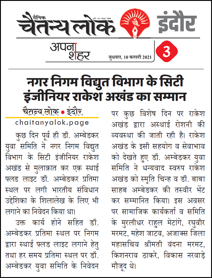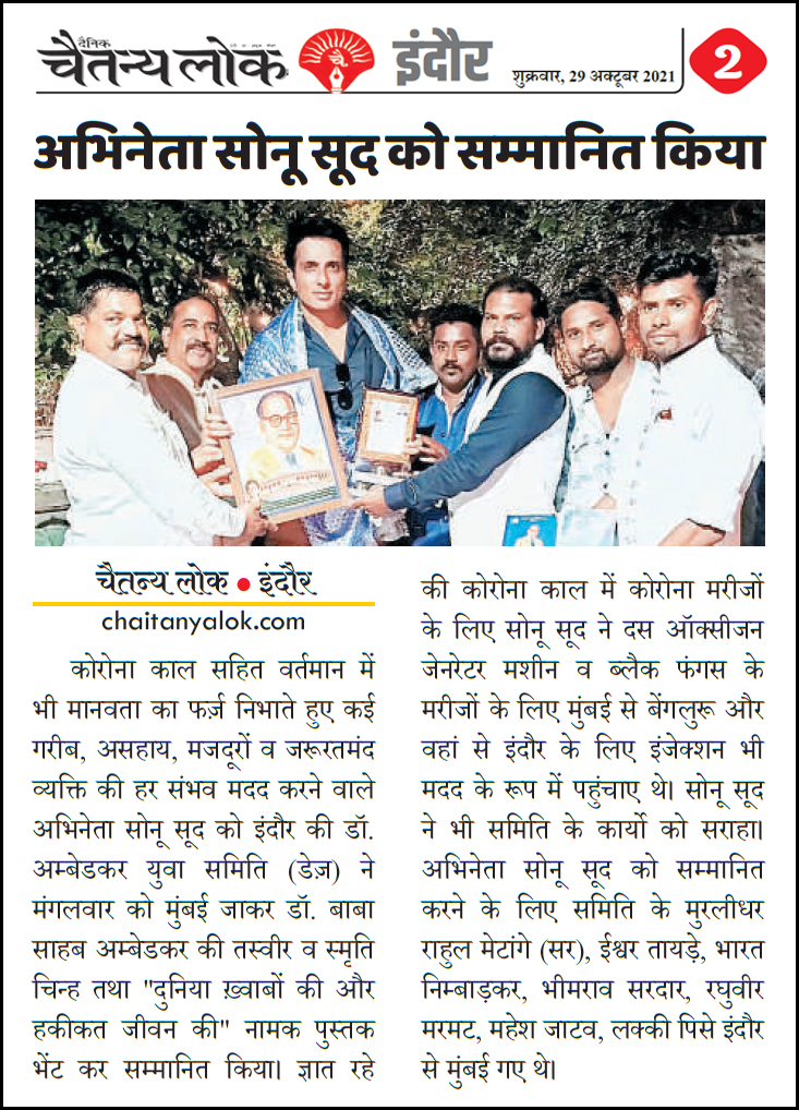 डॉ. अम्बेडकर युग सेवा समिति (DAYS), इंदौर – म.प्र. एक सामाजिक संगठन है, जिसका गठन अप्रैल 2016 में किया गया । समाजसेवा के क्षेत्र में समिति अपनी एक अलग पहचान रखती है | गठन के समय समिति का नाम “डॉ. अम्बेडकर युवा समिति (DAYS)” रखा गया एवं 14 अप्रैल 2023 में समिति का नाम परिवर्तन करके “डॉ. अम्बेडकर युग सेवा समिति (DAYS)” किया गया ।