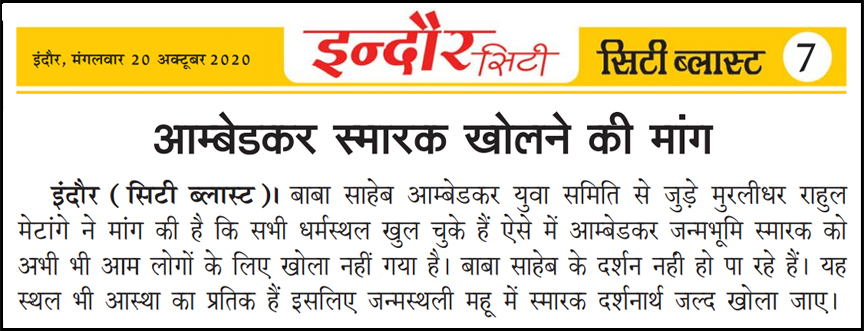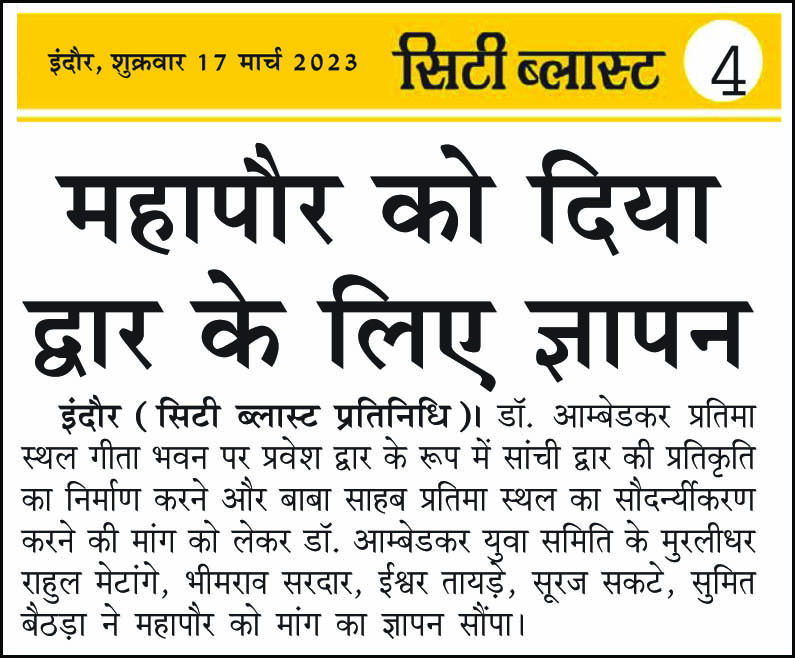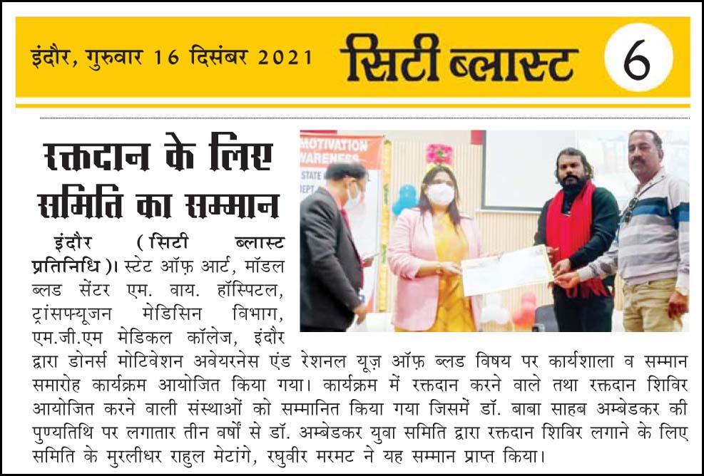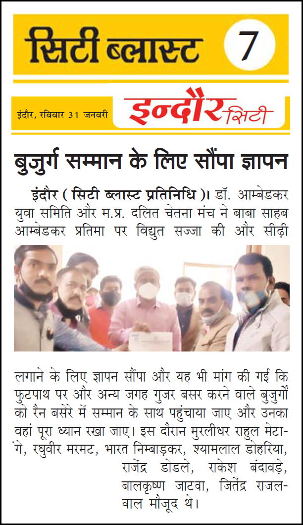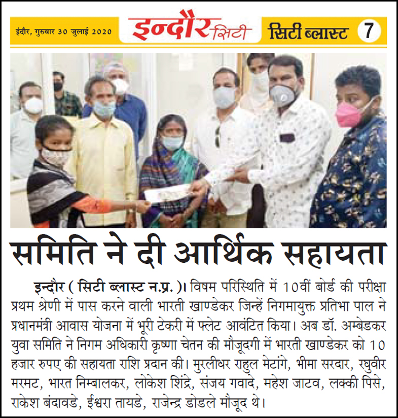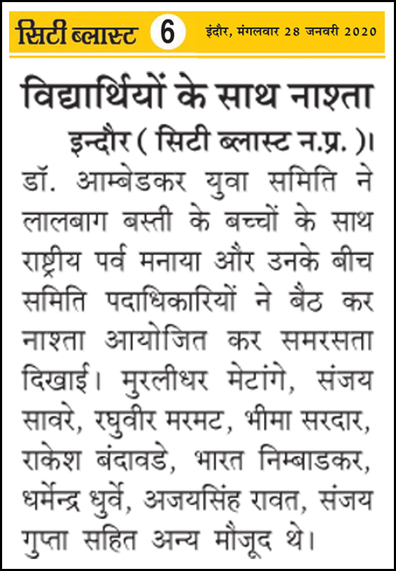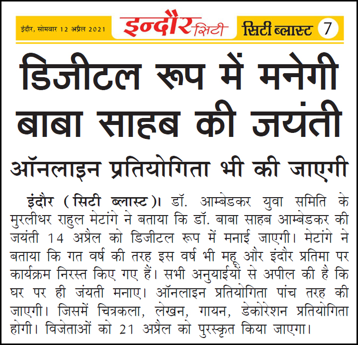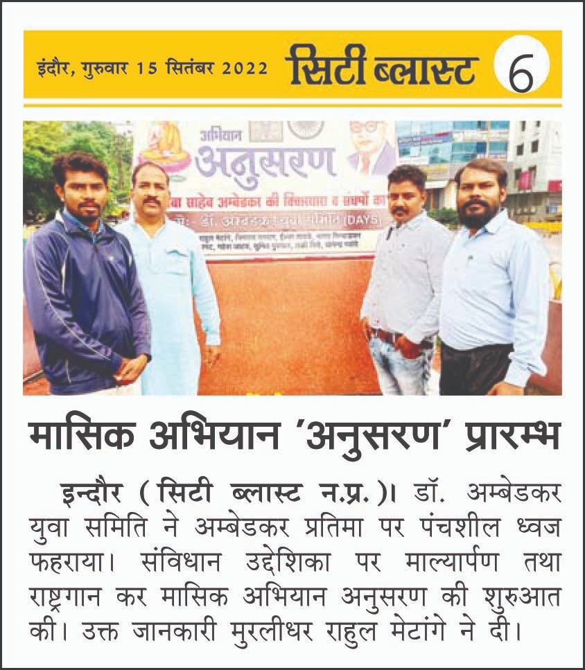 डॉ. अम्बेडकर युग सेवा समिति (DAYS), इंदौर – म.प्र. एक सामाजिक संगठन है, जिसका गठन अप्रैल 2016 में किया गया । समाजसेवा के क्षेत्र में समिति अपनी एक अलग पहचान रखती है | गठन के समय समिति का नाम “डॉ. अम्बेडकर युवा समिति (DAYS)” रखा गया एवं 14 अप्रैल 2023 में समिति का नाम परिवर्तन करके “डॉ. अम्बेडकर युग सेवा समिति (DAYS)” किया गया ।