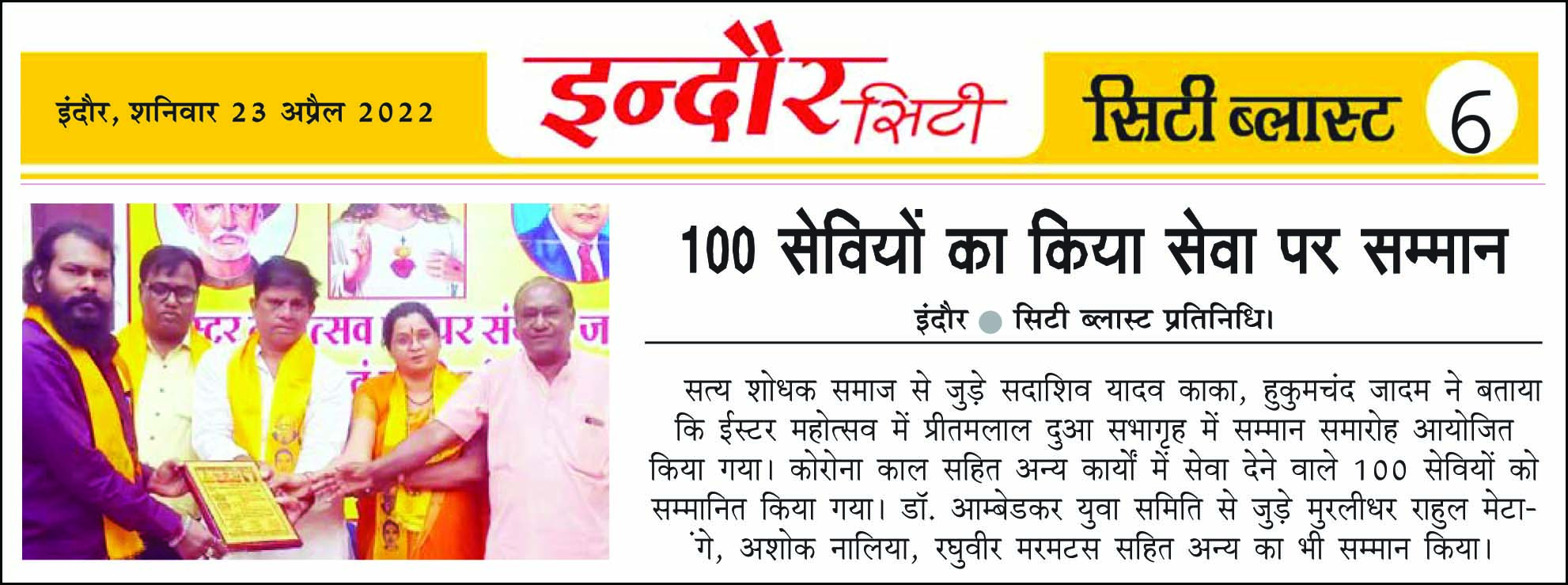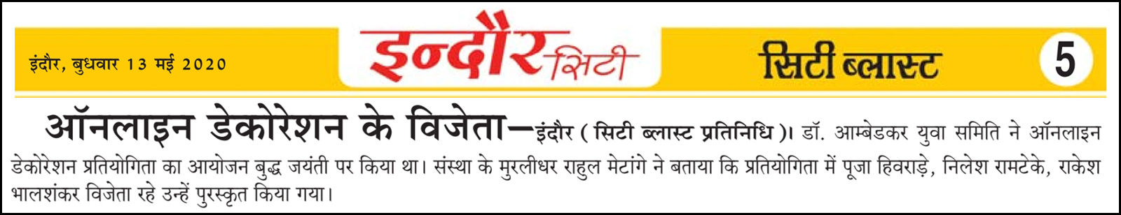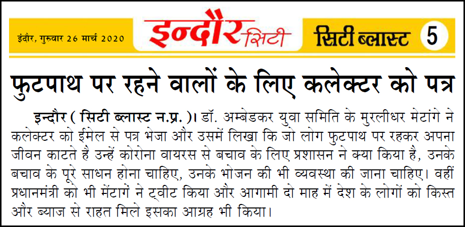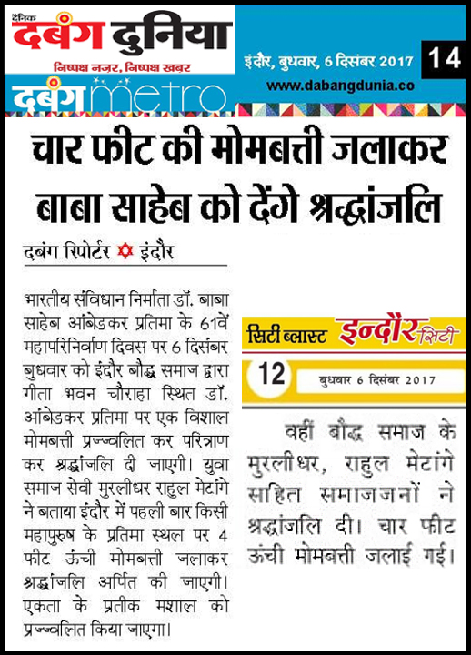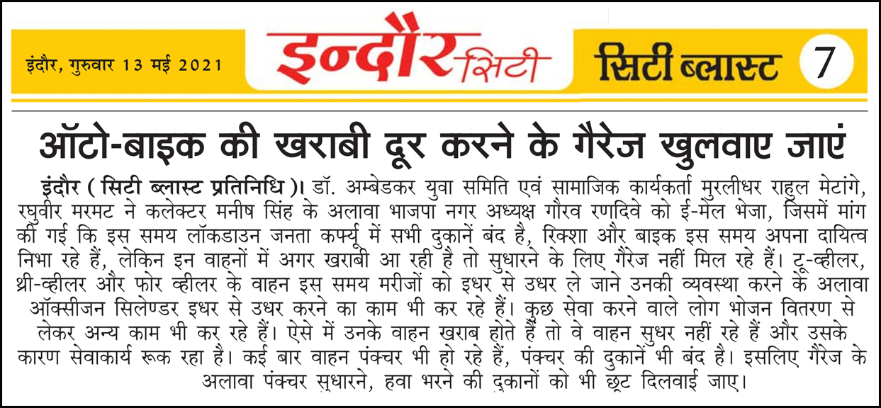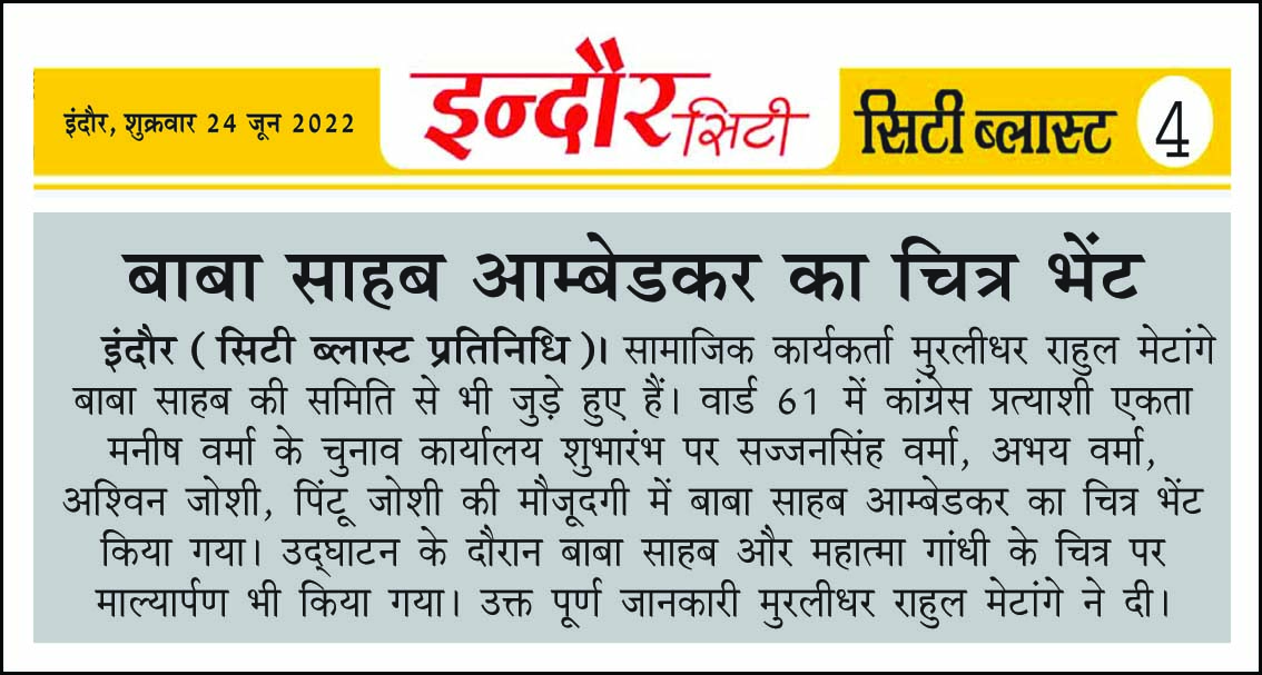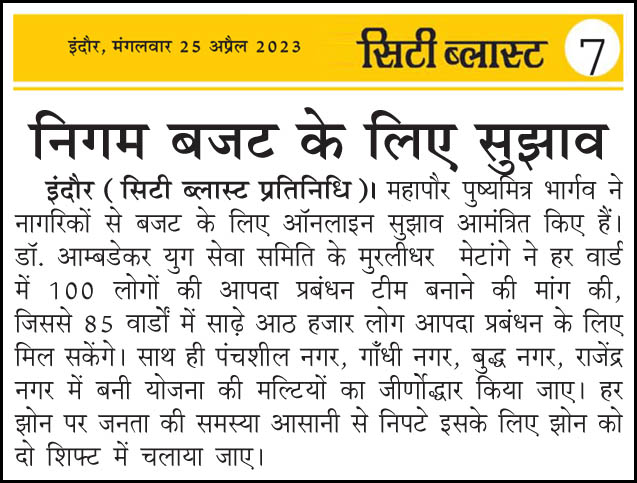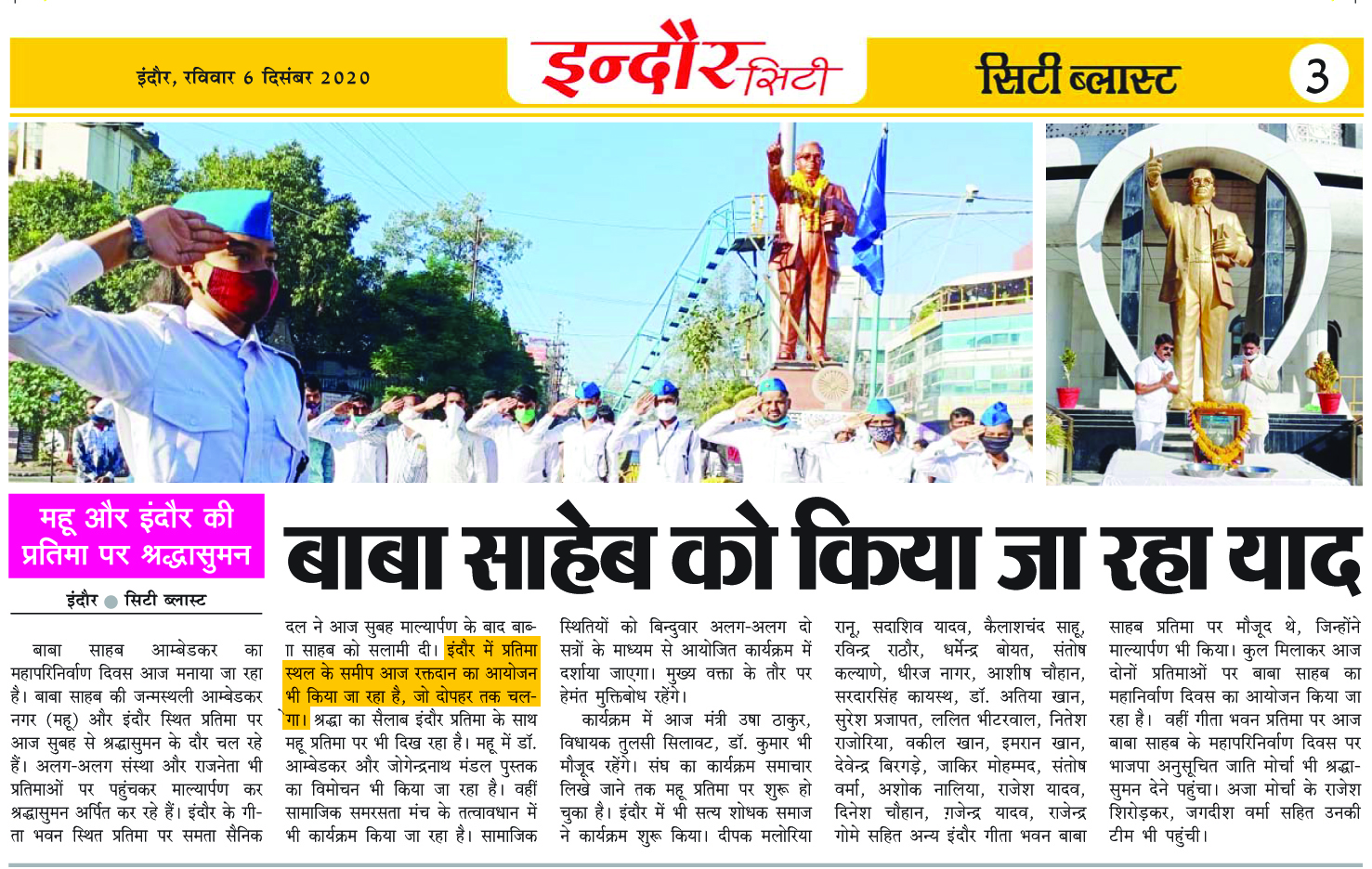 डॉ. अम्बेडकर युग सेवा समिति (DAYS), इंदौर – म.प्र. एक सामाजिक संगठन है, जिसका गठन अप्रैल 2016 में किया गया । समाजसेवा के क्षेत्र में समिति अपनी एक अलग पहचान रखती है | गठन के समय समिति का नाम “डॉ. अम्बेडकर युवा समिति (DAYS)” रखा गया एवं 14 अप्रैल 2023 में समिति का नाम परिवर्तन करके “डॉ. अम्बेडकर युग सेवा समिति (DAYS)” किया गया ।