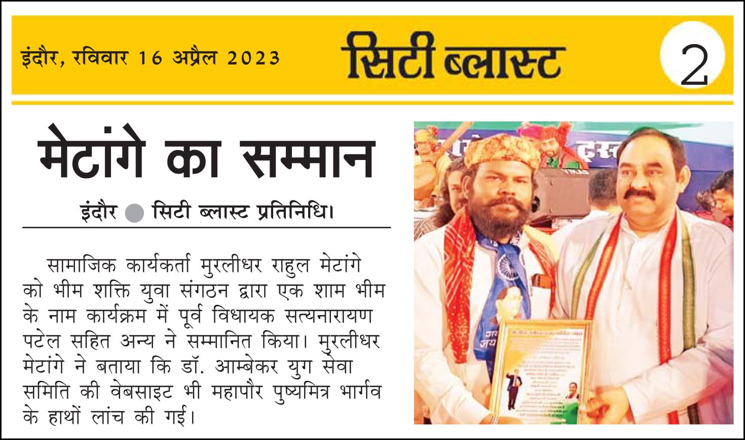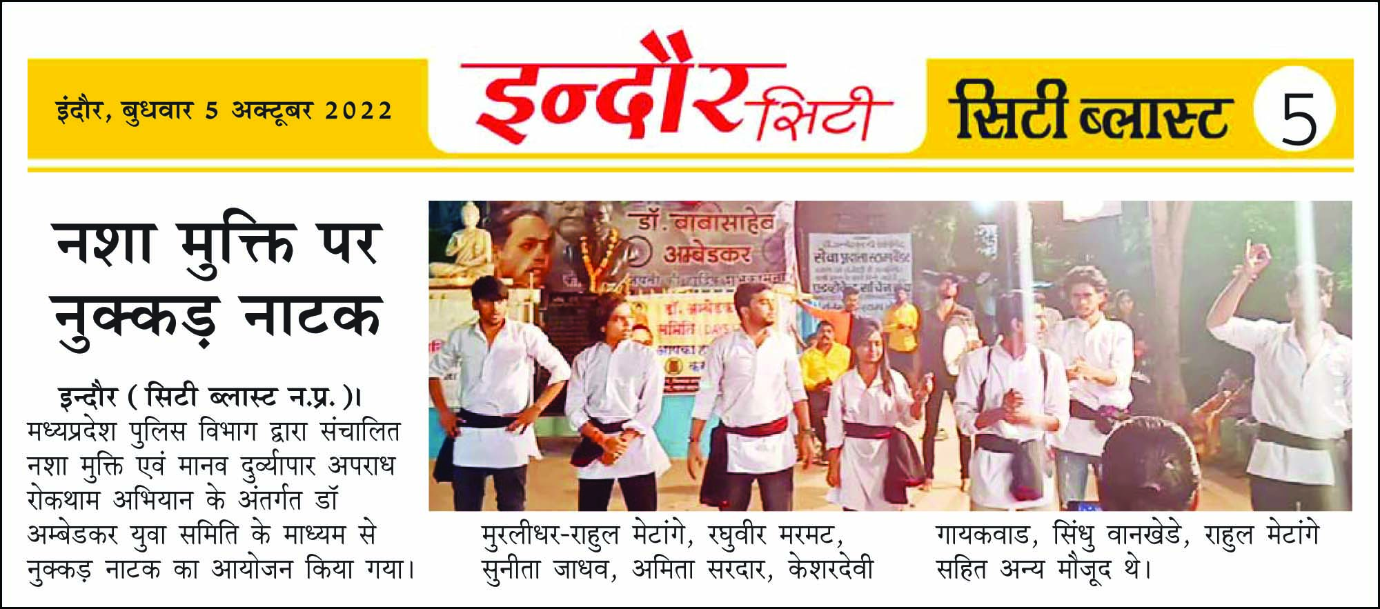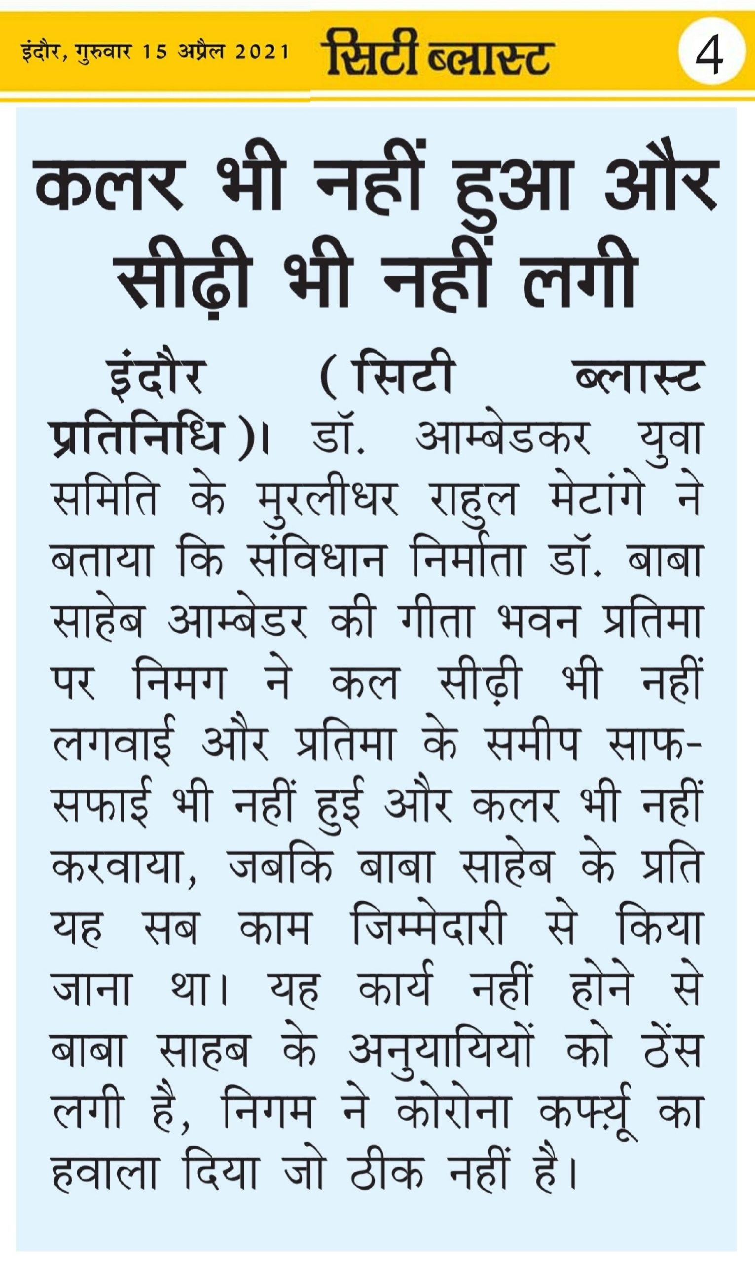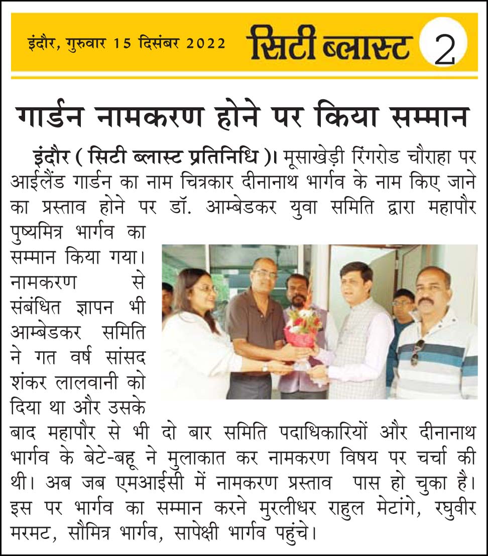डॉ. अम्बेडकर युग सेवा समिति (DAYS), इंदौर – म.प्र. एक सामाजिक संगठन है, जिसका गठन अप्रैल 2016 में किया गया । समाजसेवा के क्षेत्र में समिति अपनी एक अलग पहचान रखती है | गठन के समय समिति का नाम “डॉ. अम्बेडकर युवा समिति (DAYS)” रखा गया एवं 14 अप्रैल 2023 में समिति का नाम परिवर्तन करके “डॉ. अम्बेडकर युग सेवा समिति (DAYS)” किया गया ।