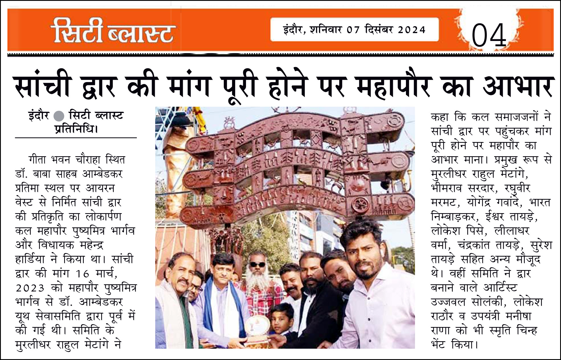 सामाजिक कार्यों में त्याग और समर्पण भाव जितना अधिक होगा, सफलता उतना ही सुखद अनुभव देगी ।