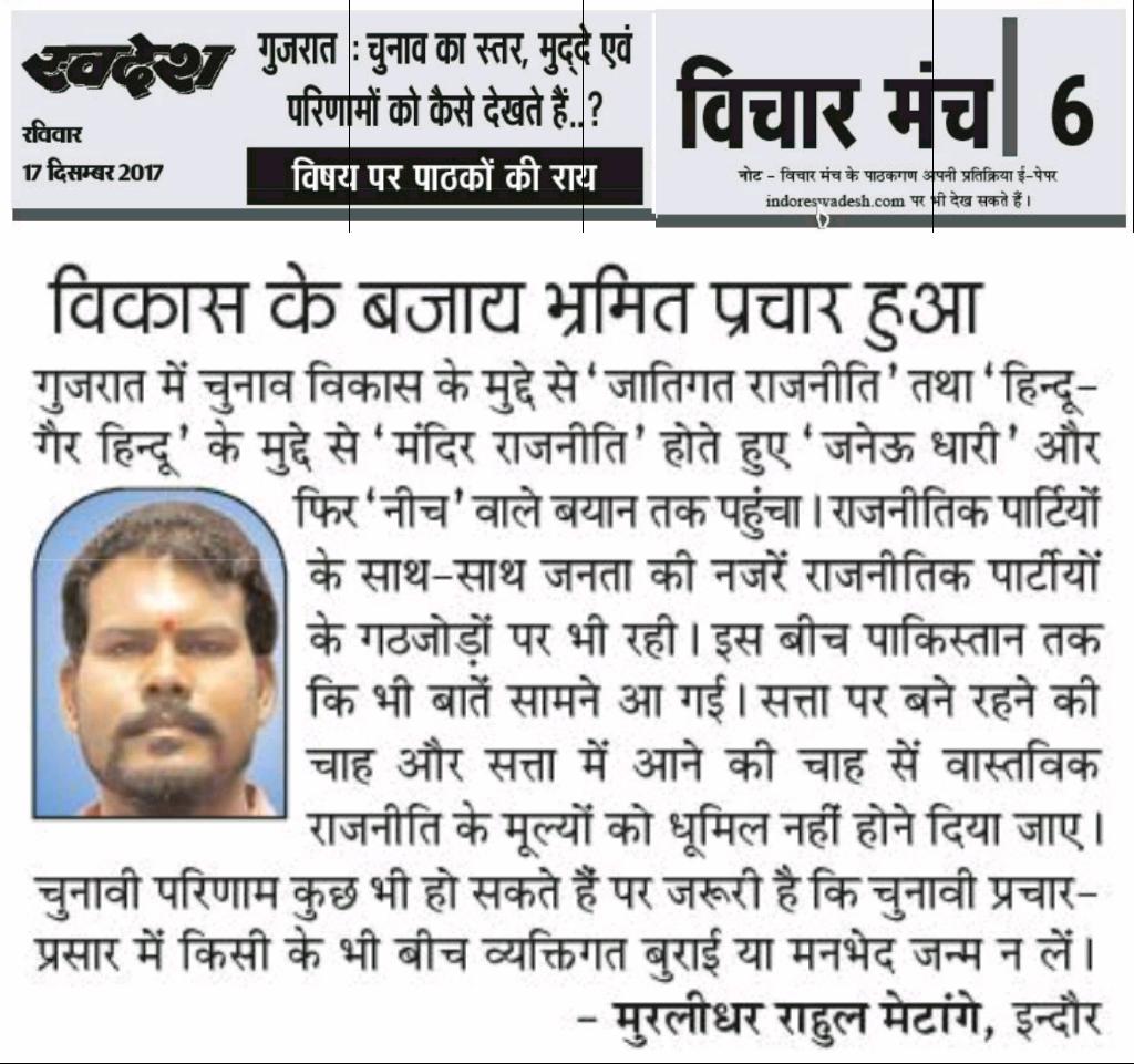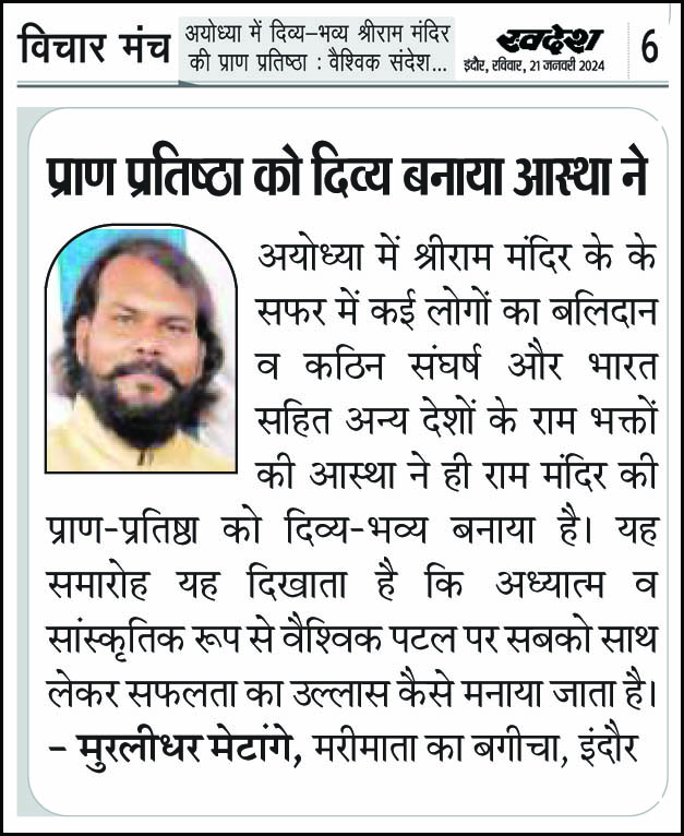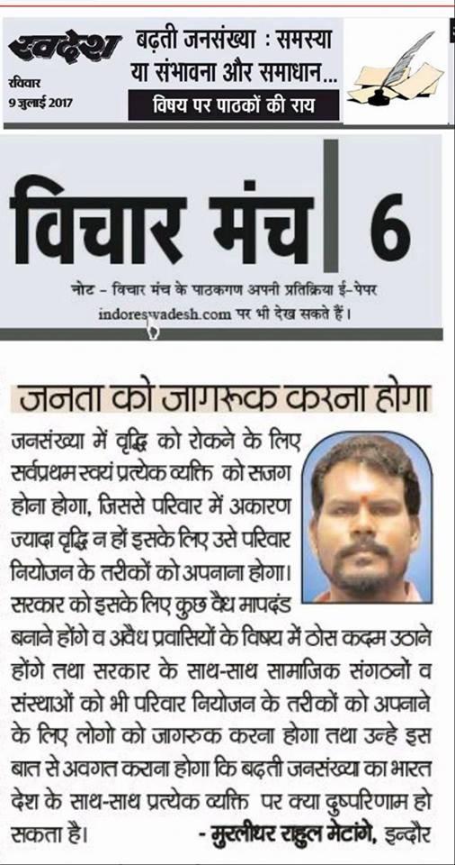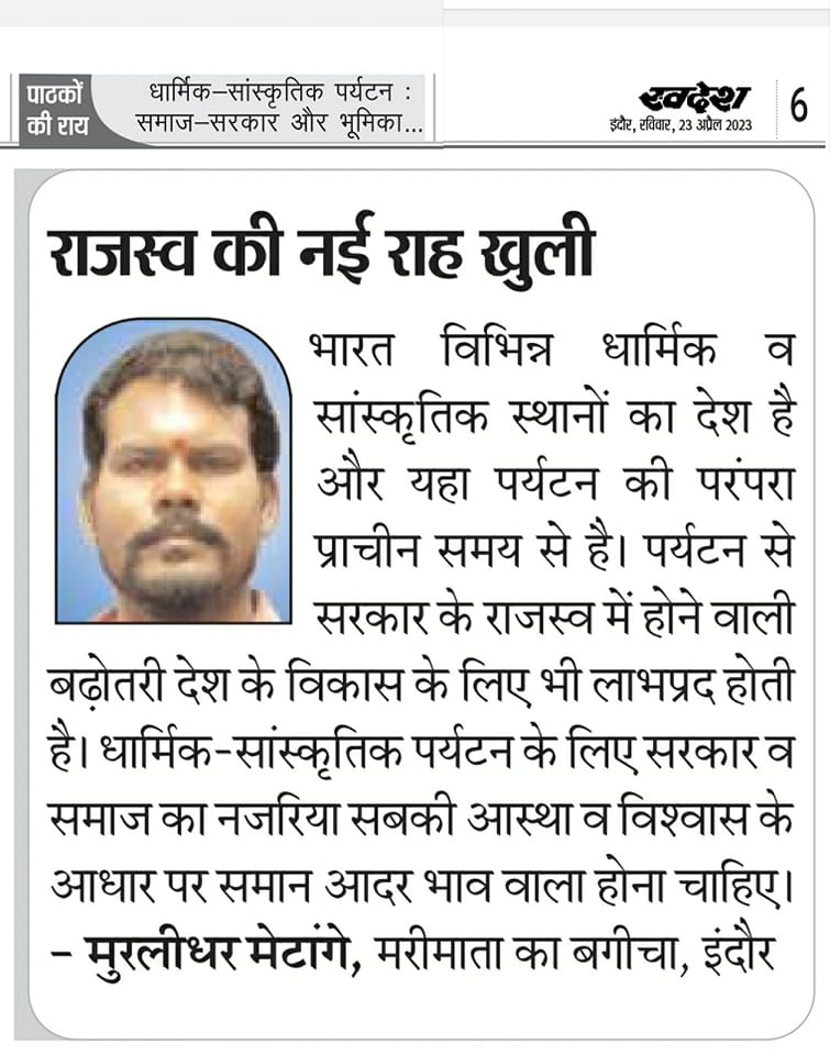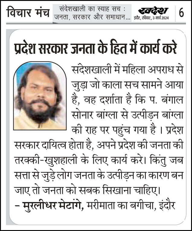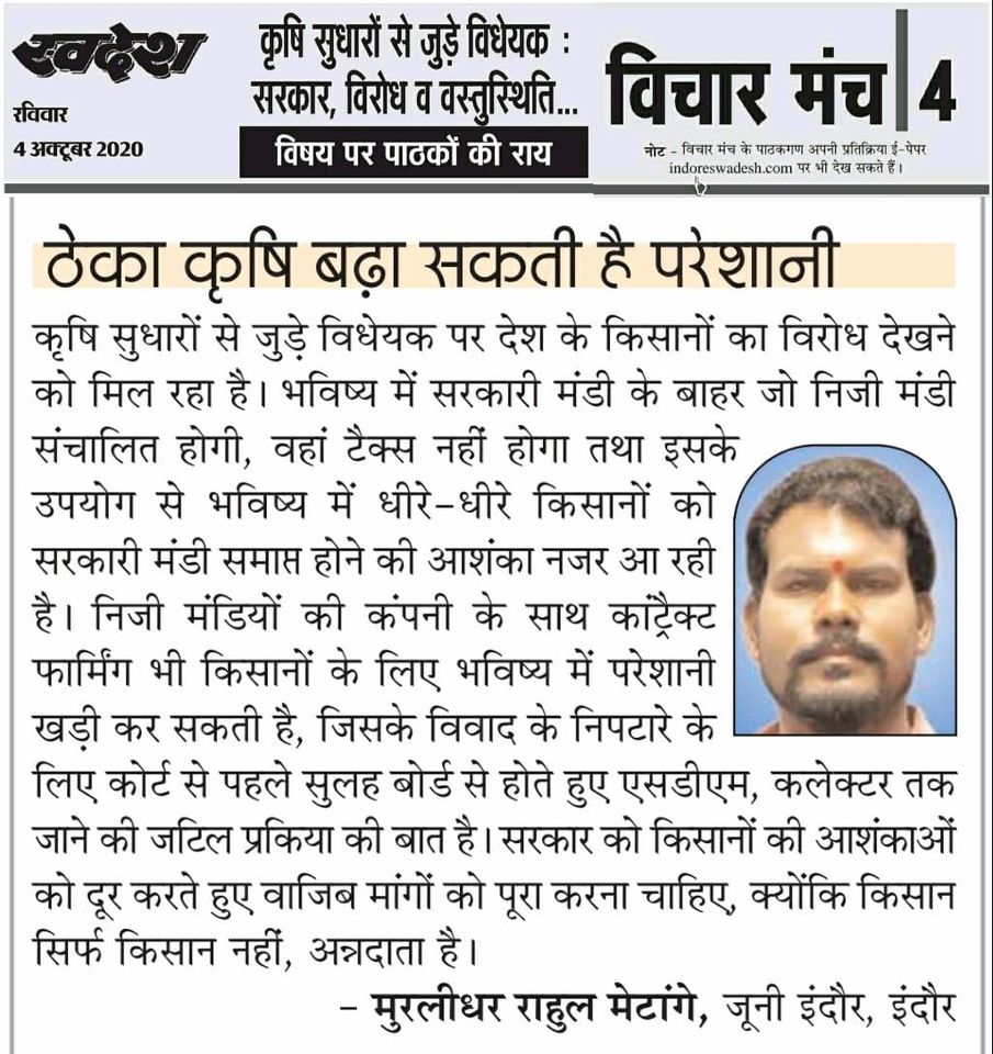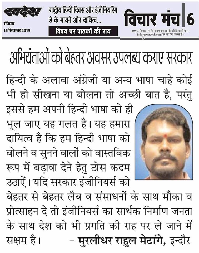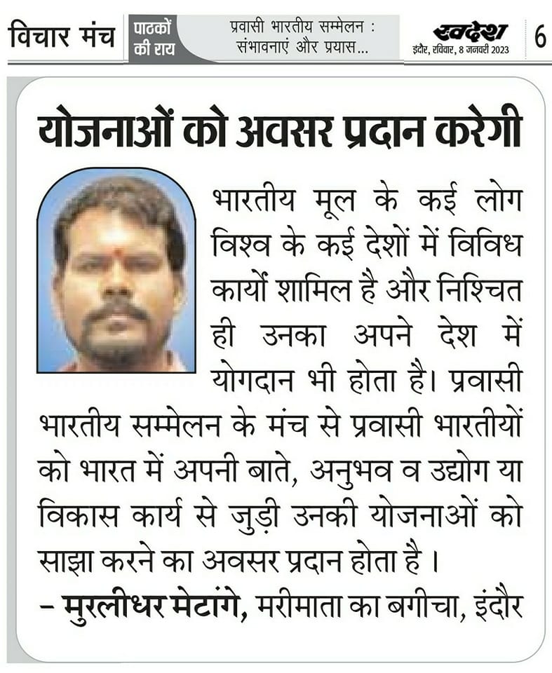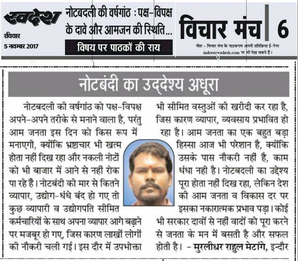 स्वदेश न्यूज़ पेपर में प्रति सप्ताह अलग-अलग विषयों पर सामाजिक कार्यकर्ता मुरलीधर राहुल मेटांगे द्वारा अपने विचार प्रकट किये गए । जो इस प्रकार है ।