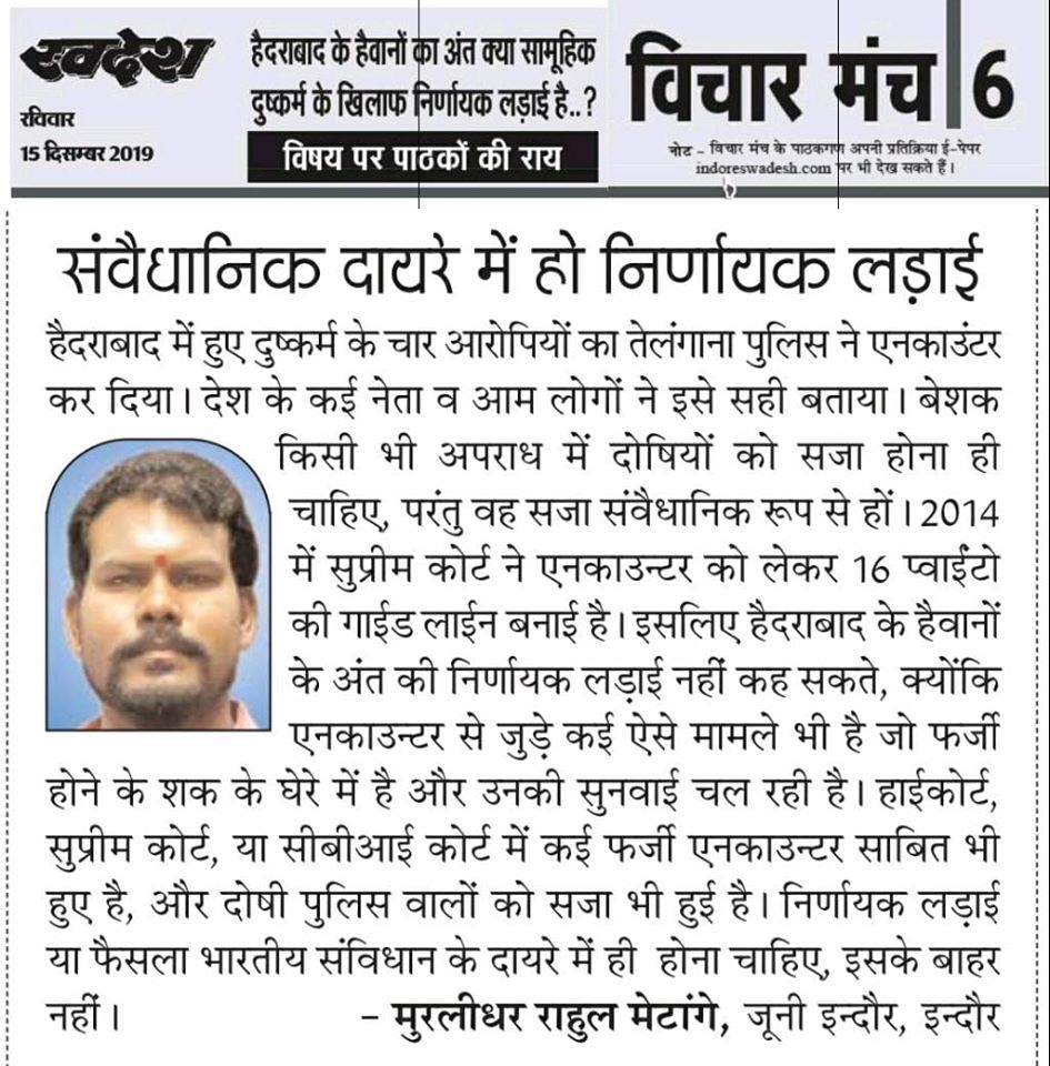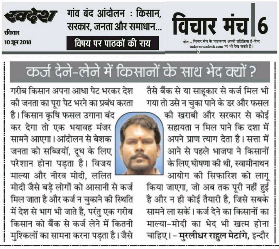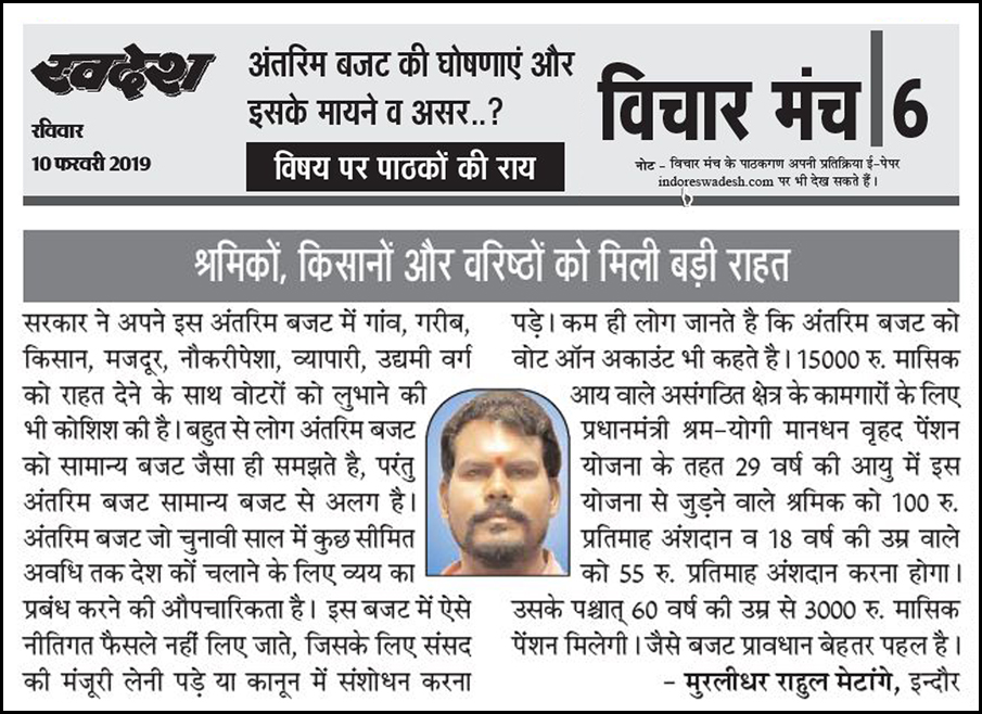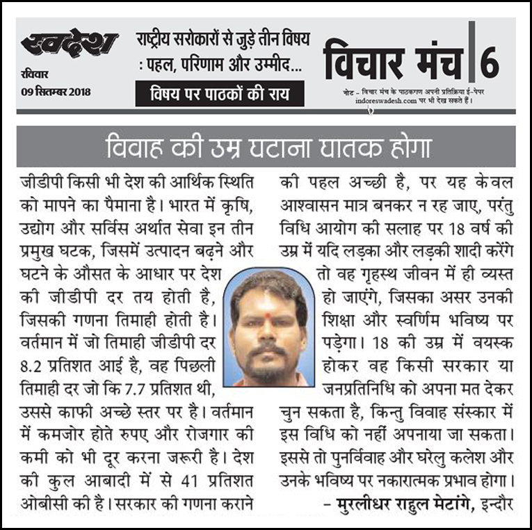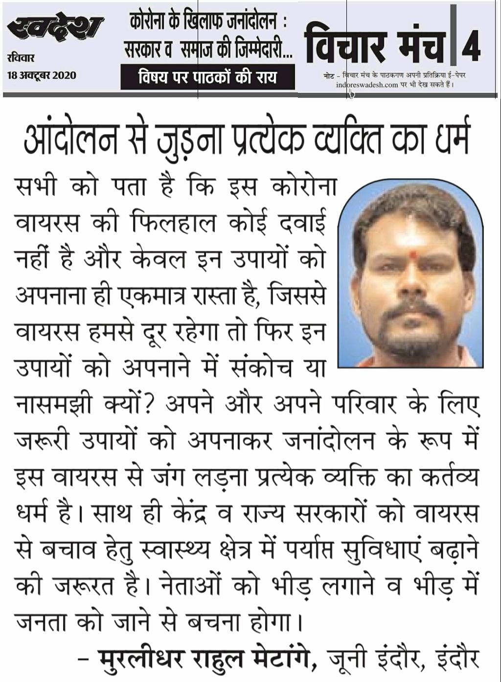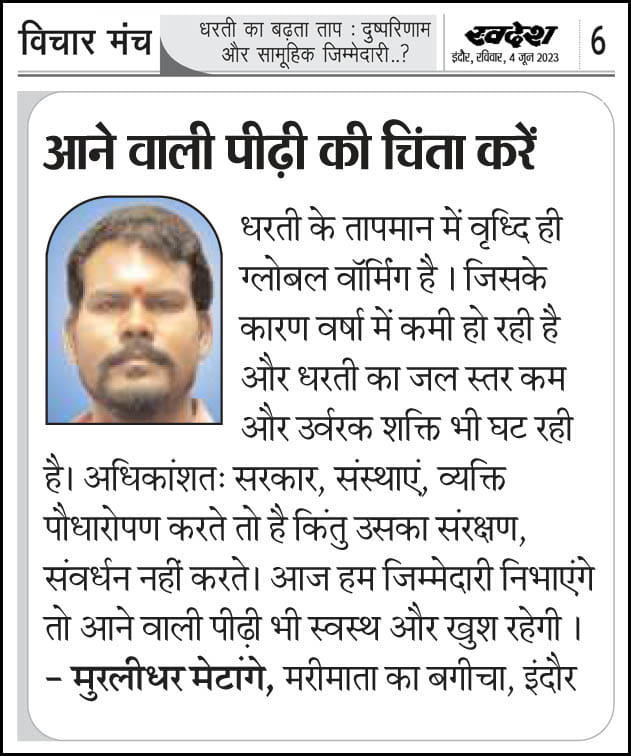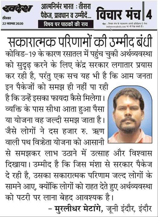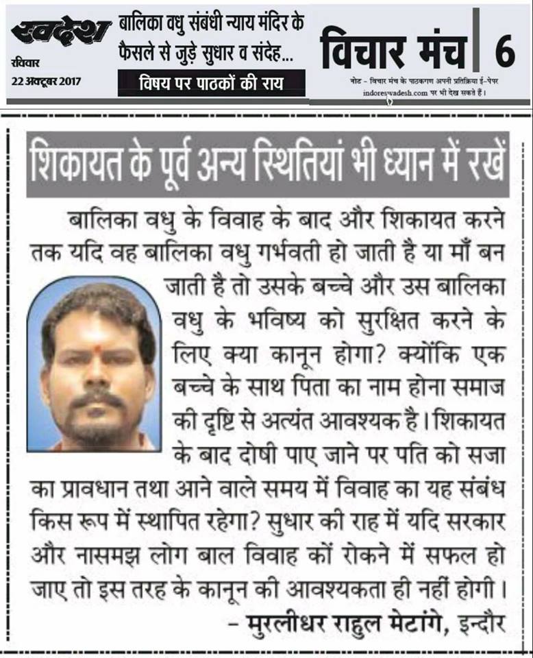 स्वदेश न्यूज़ पेपर में प्रति सप्ताह अलग-अलग विषयों पर सामाजिक कार्यकर्ता मुरलीधर राहुल मेटांगे द्वारा अपने विचार प्रकट किये गए । जो इस प्रकार है ।