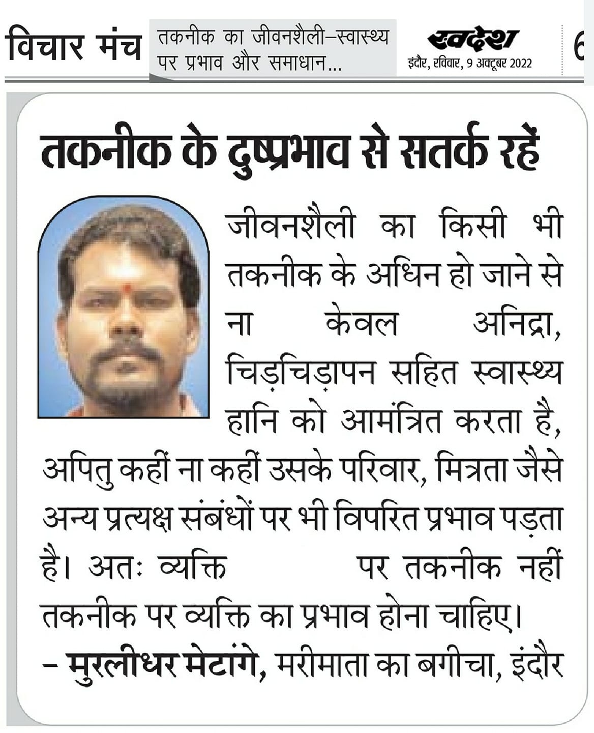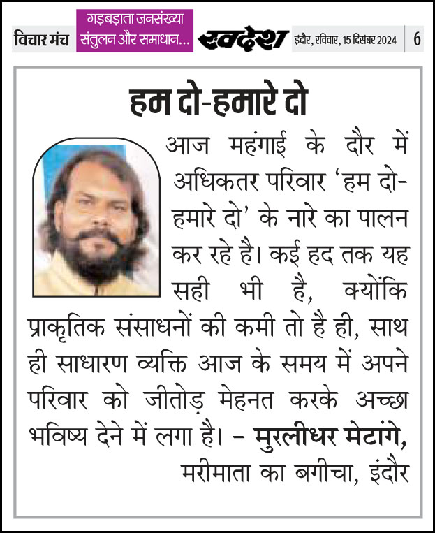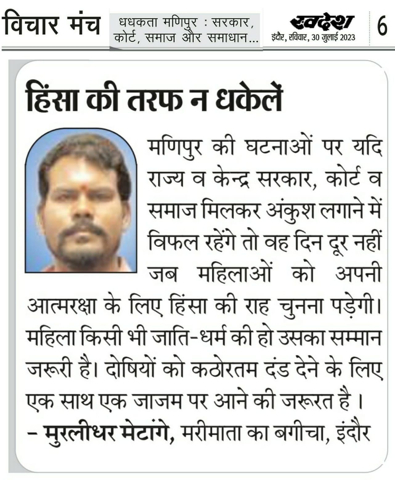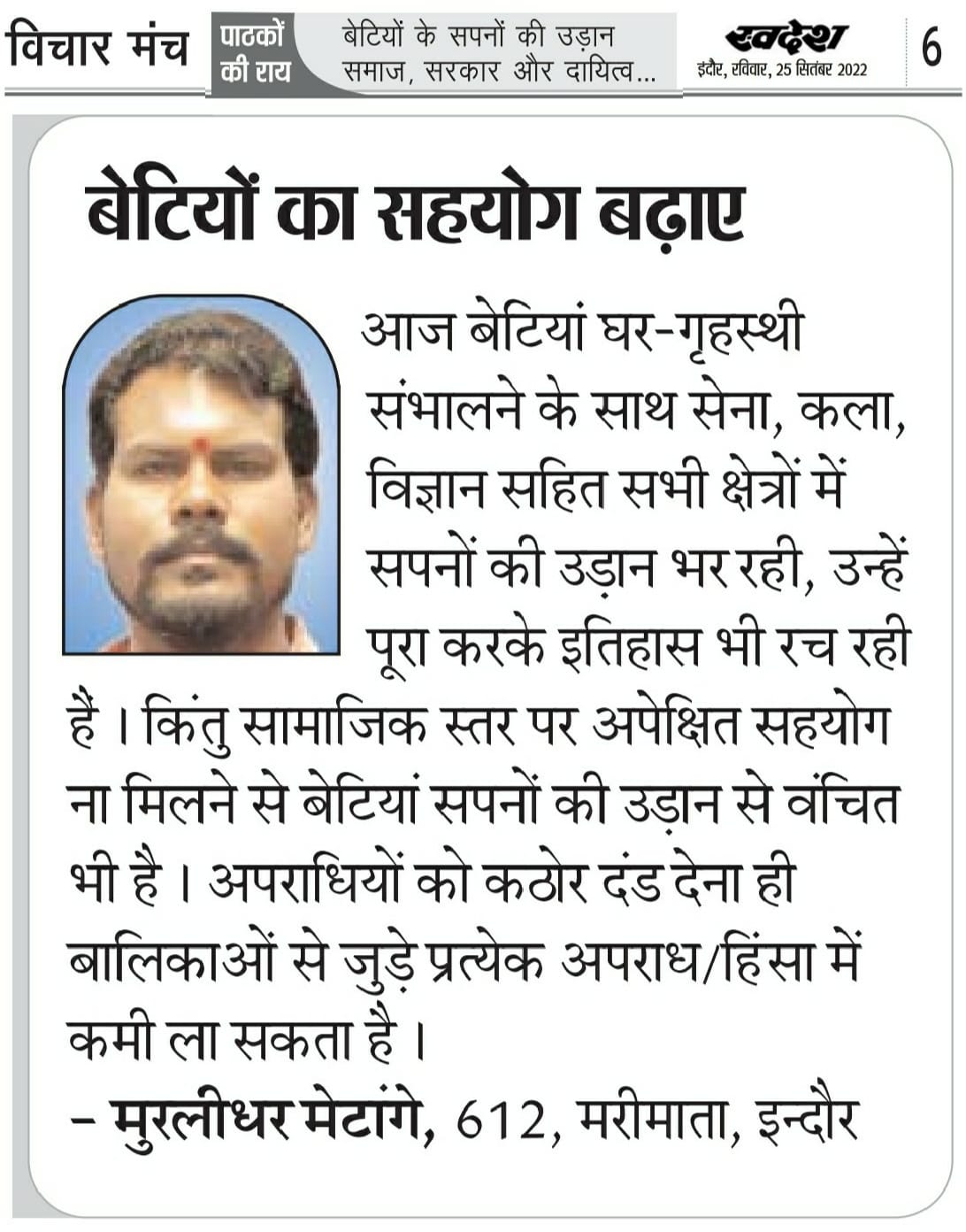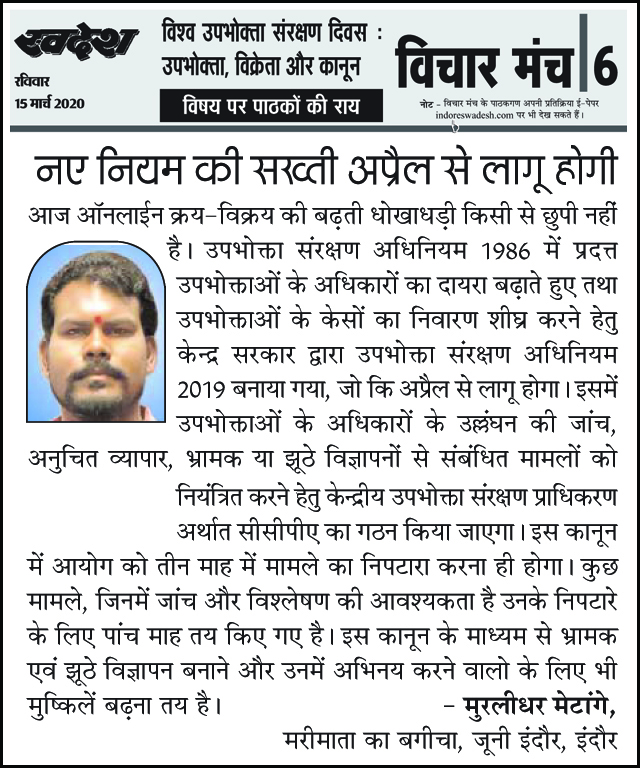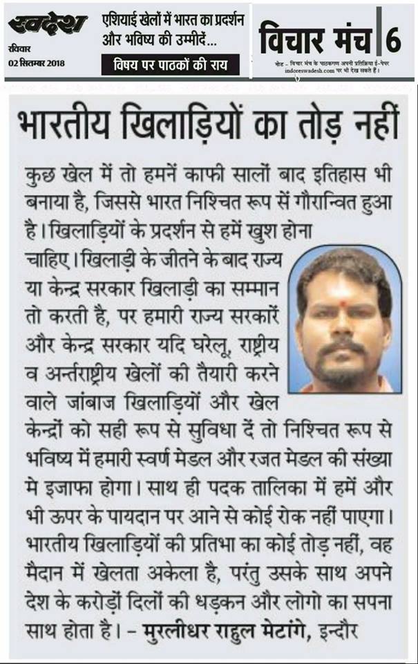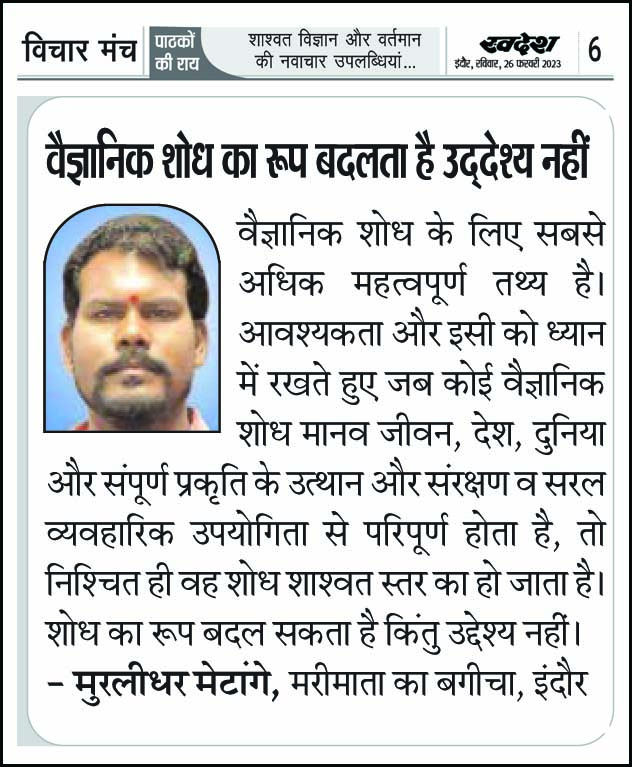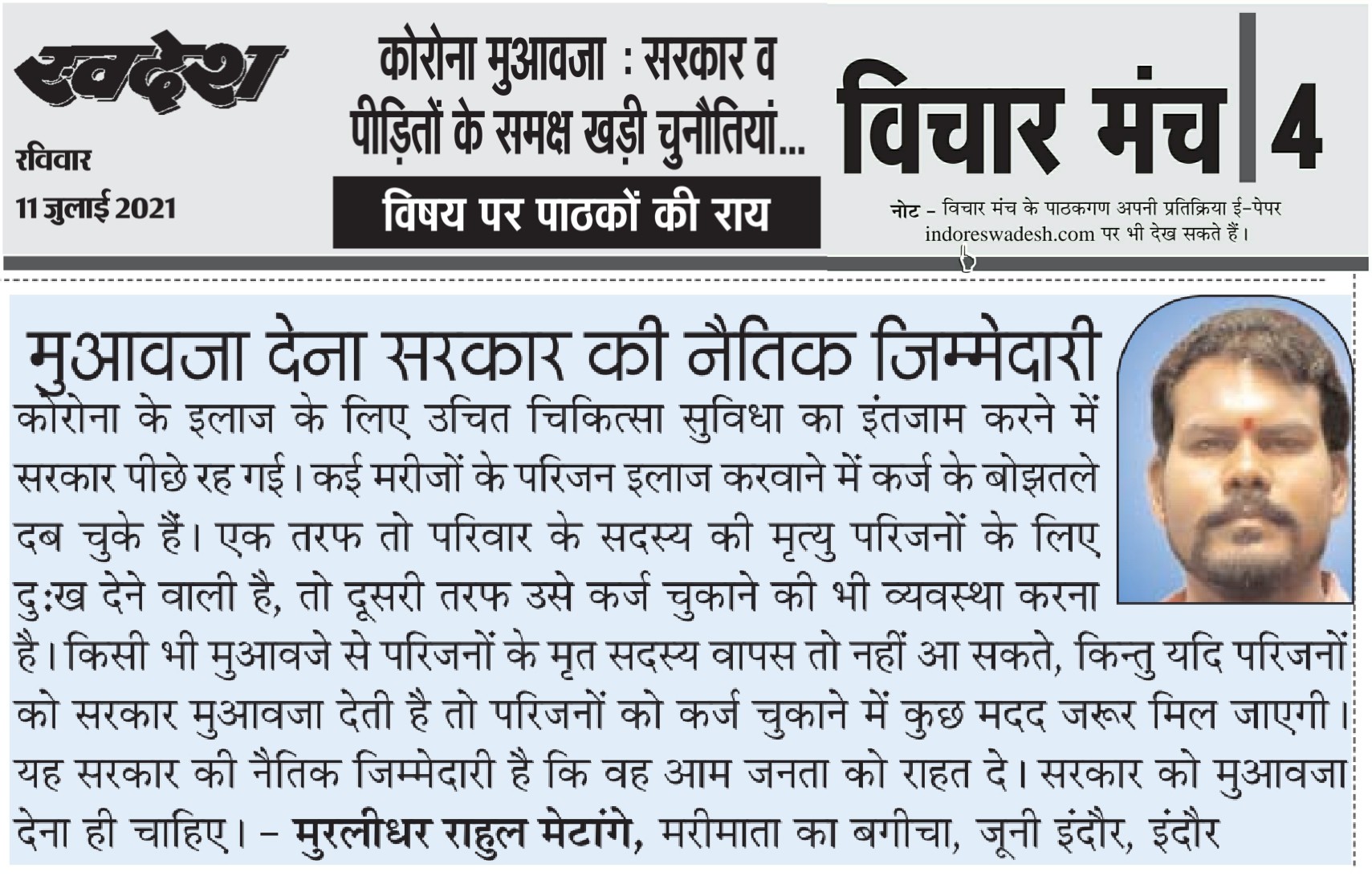 स्वदेश न्यूज़ पेपर में प्रति सप्ताह अलग-अलग विषयों पर सामाजिक कार्यकर्ता मुरलीधर राहुल मेटांगे द्वारा अपने विचार प्रकट किये गए । जो इस प्रकार है ।
