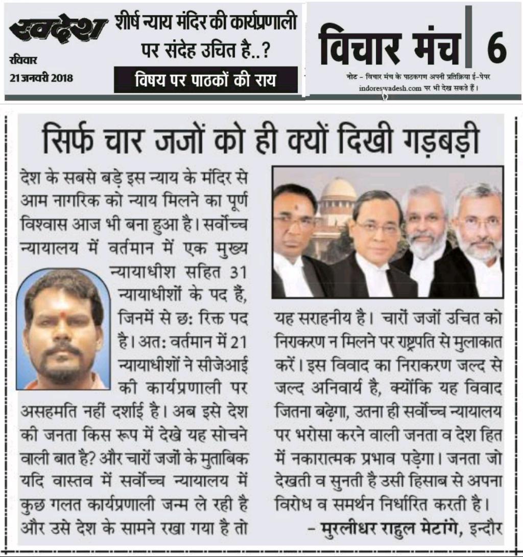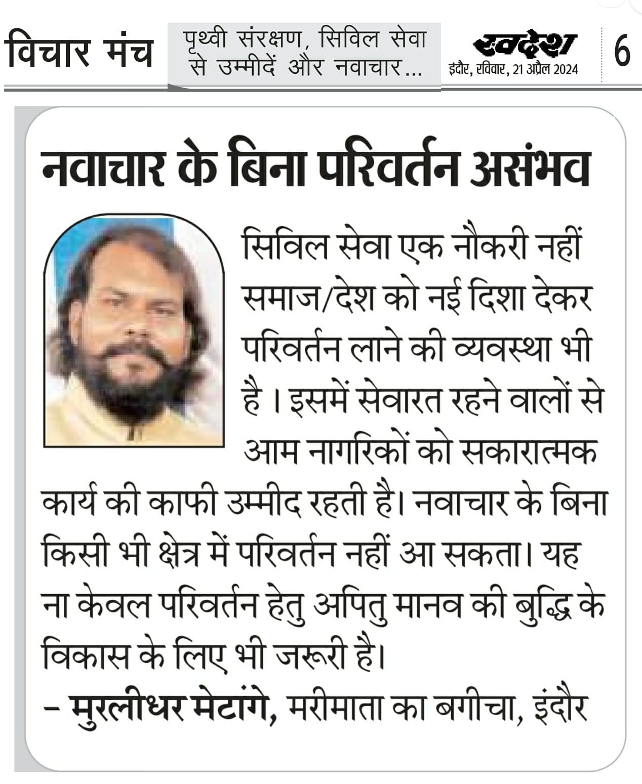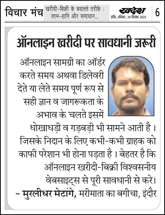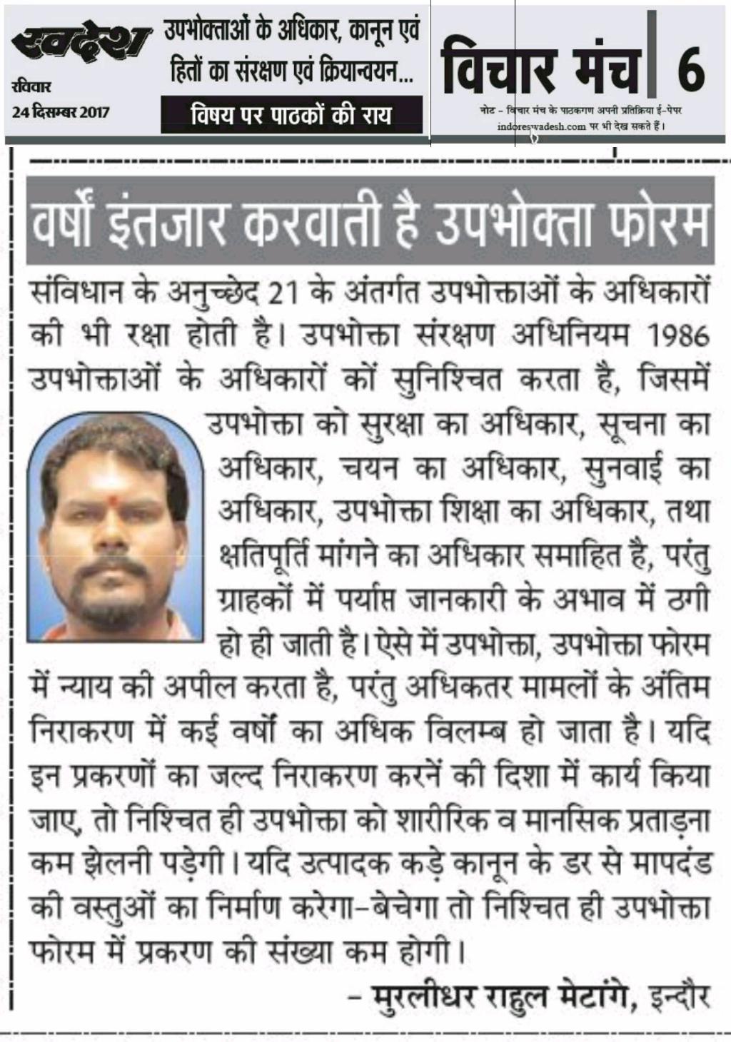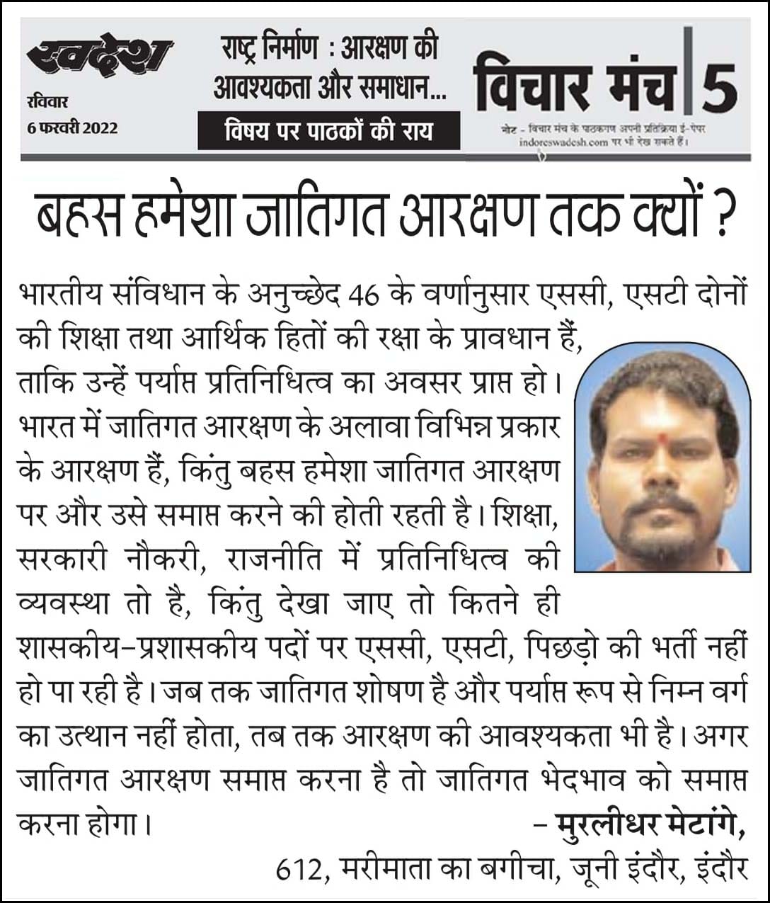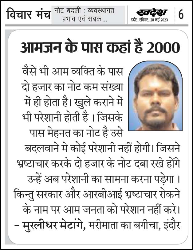 स्वदेश न्यूज़ पेपर में प्रति सप्ताह अलग-अलग विषयों पर सामाजिक कार्यकर्ता मुरलीधर राहुल मेटांगे द्वारा अपने विचार प्रकट किये गए । जो इस प्रकार है ।