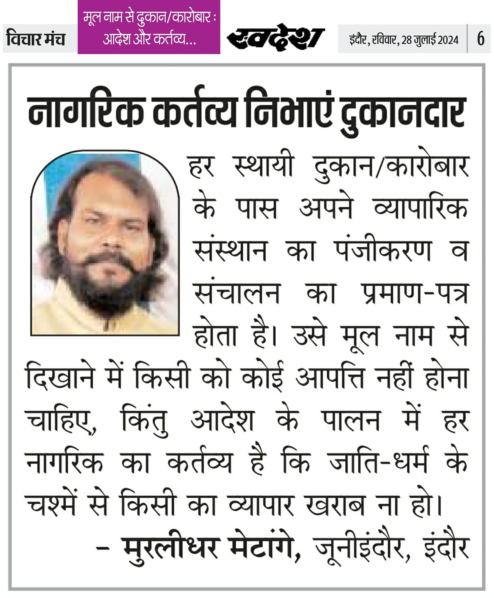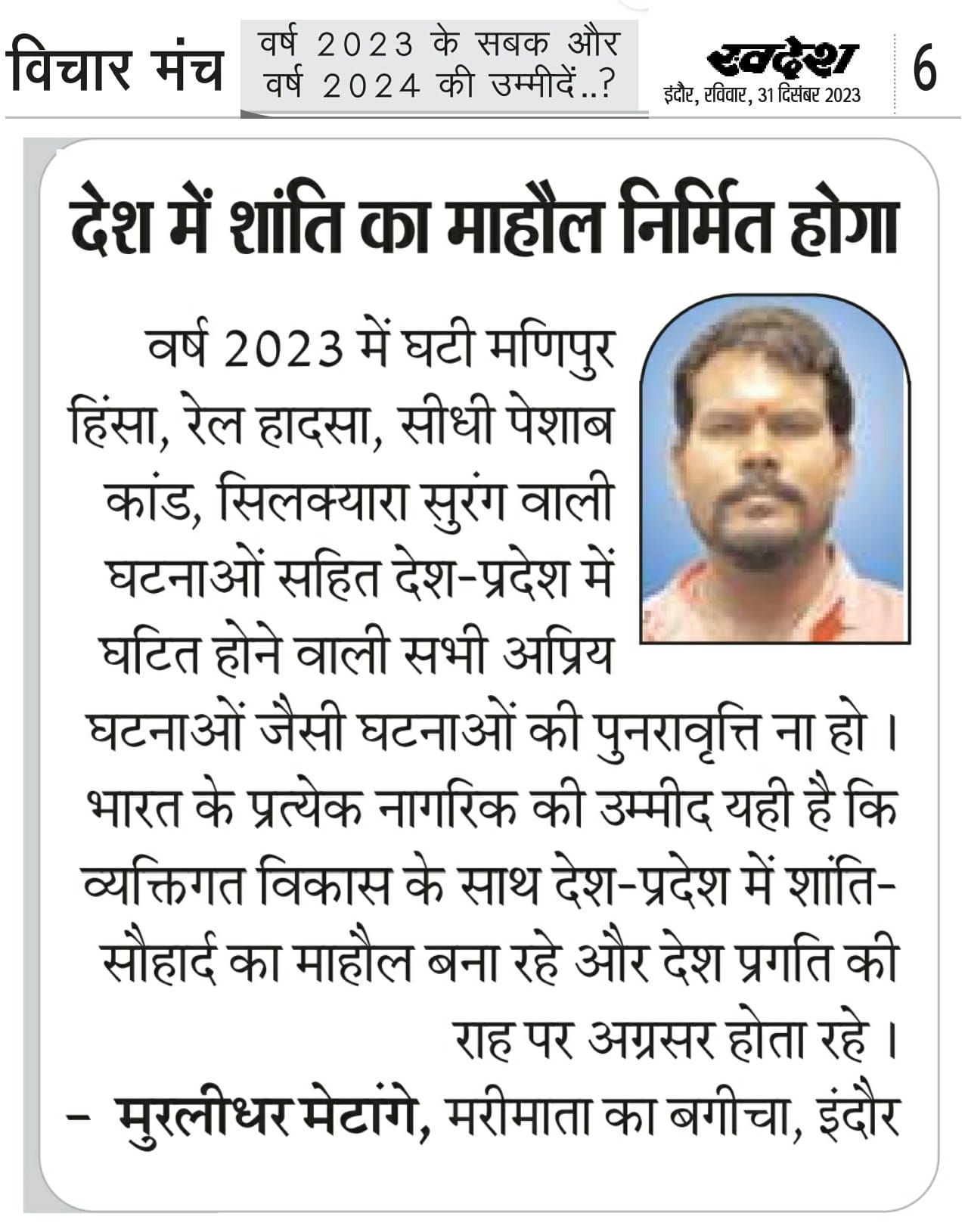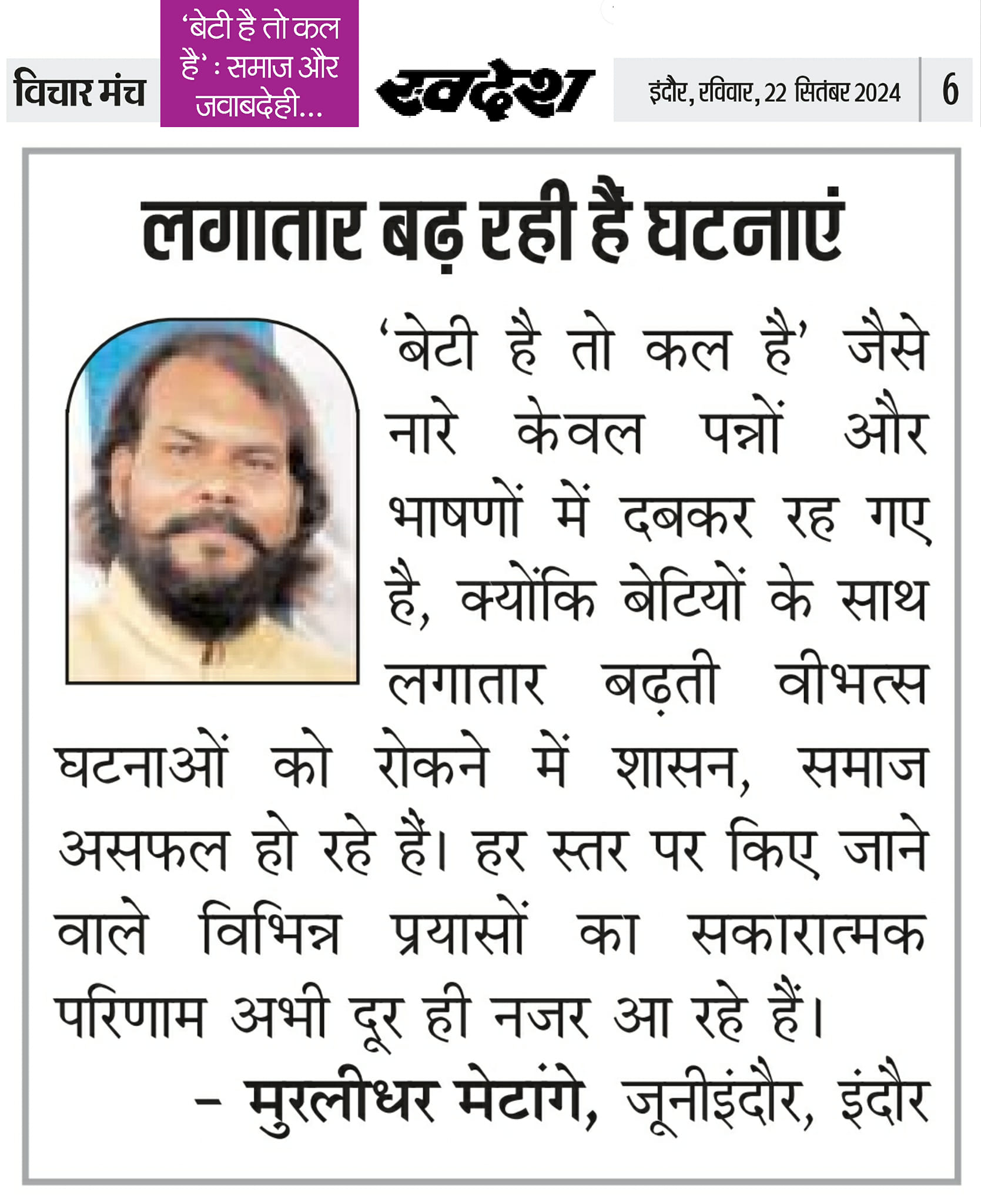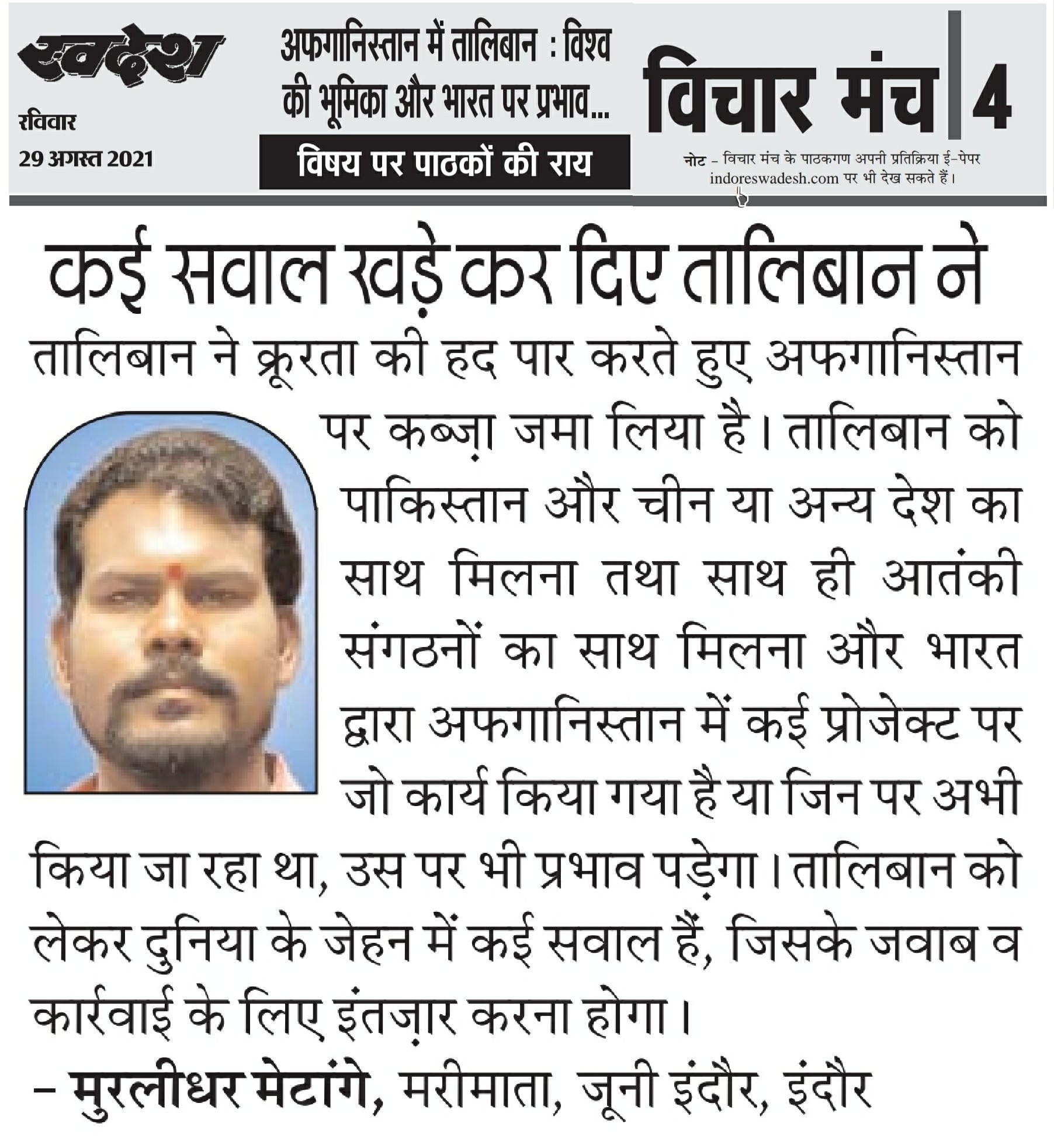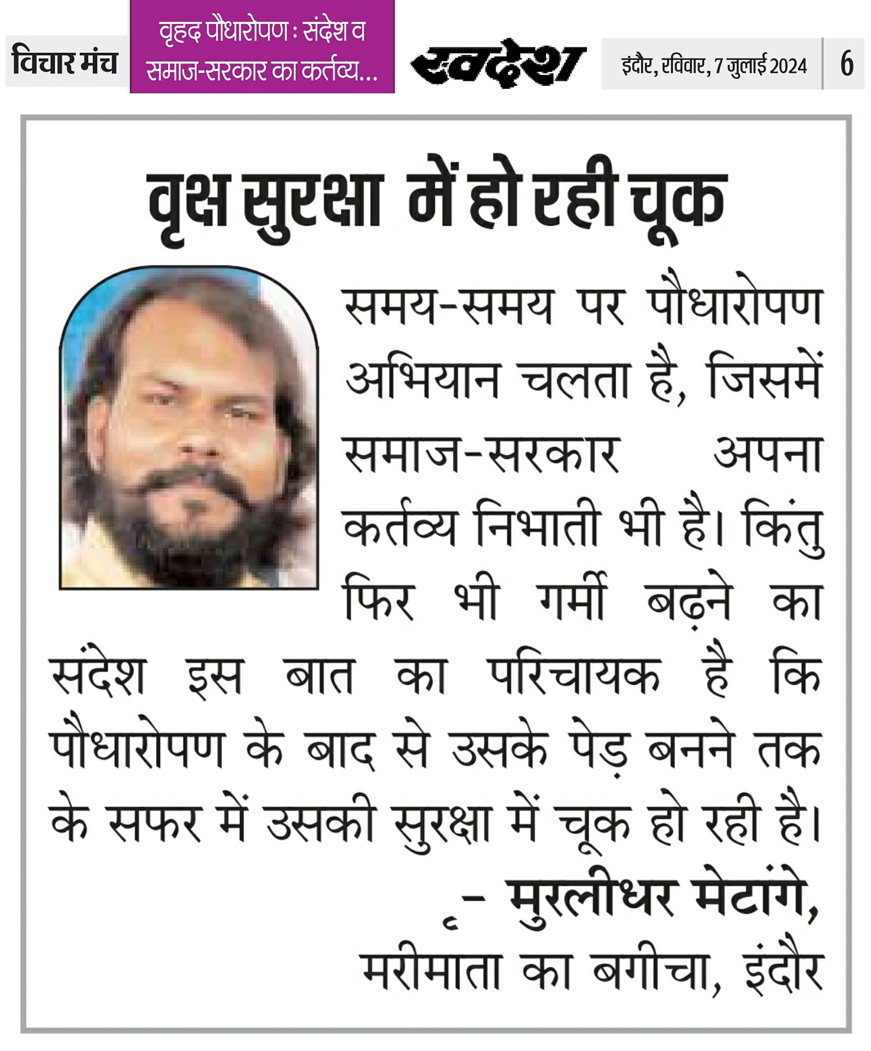स्वदेश न्यूज़ पेपर में प्रति सप्ताह अलग-अलग विषयों पर सामाजिक कार्यकर्ता मुरलीधर राहुल मेटांगे द्वारा अपने विचार प्रकट किये गए । जो इस प्रकार है ।