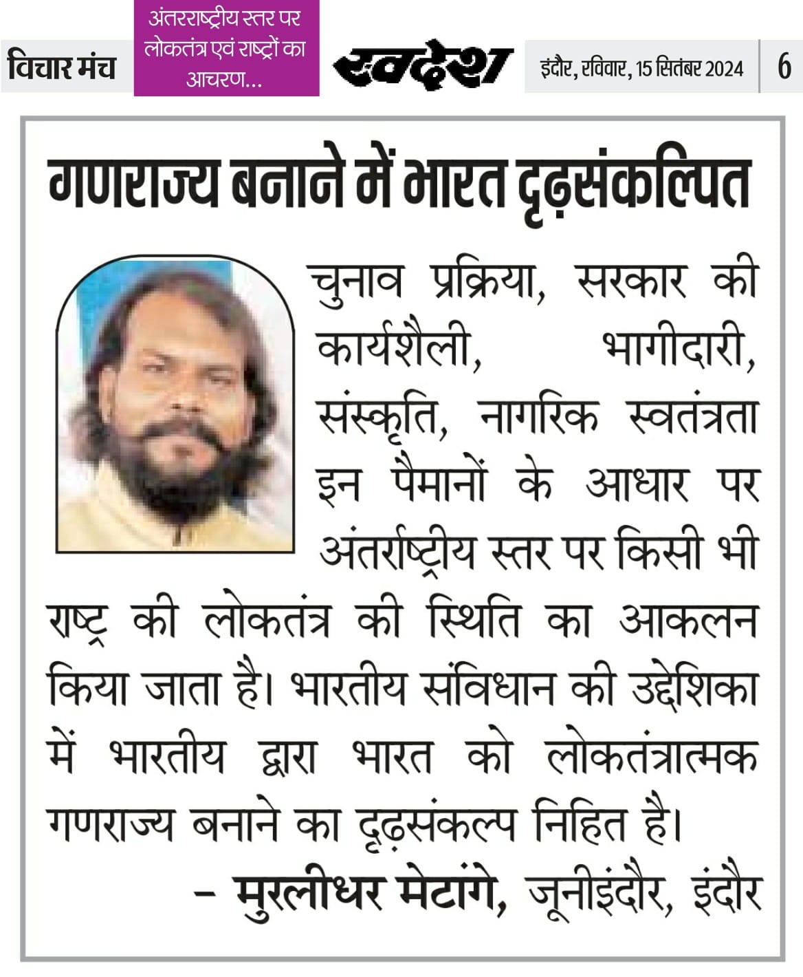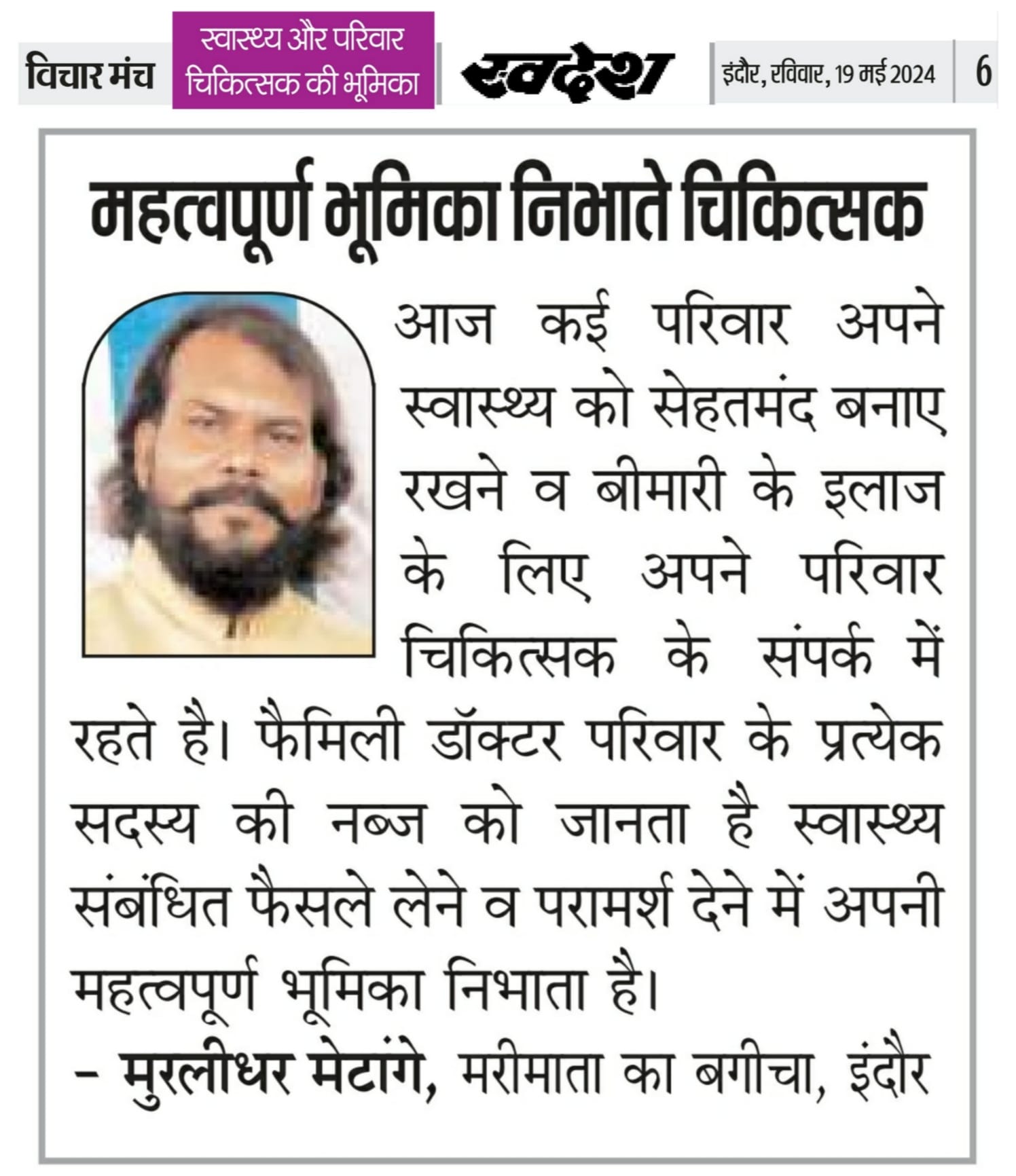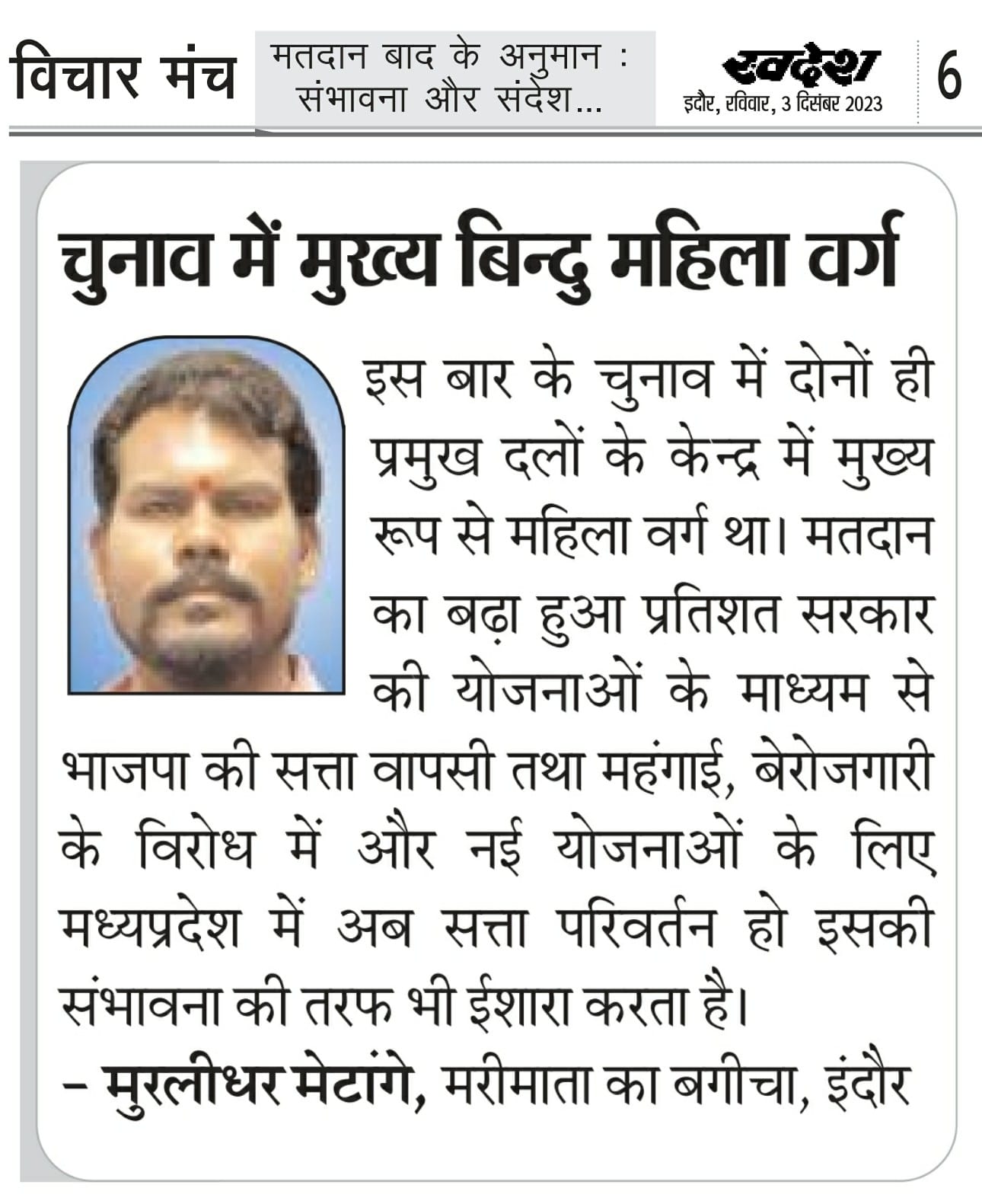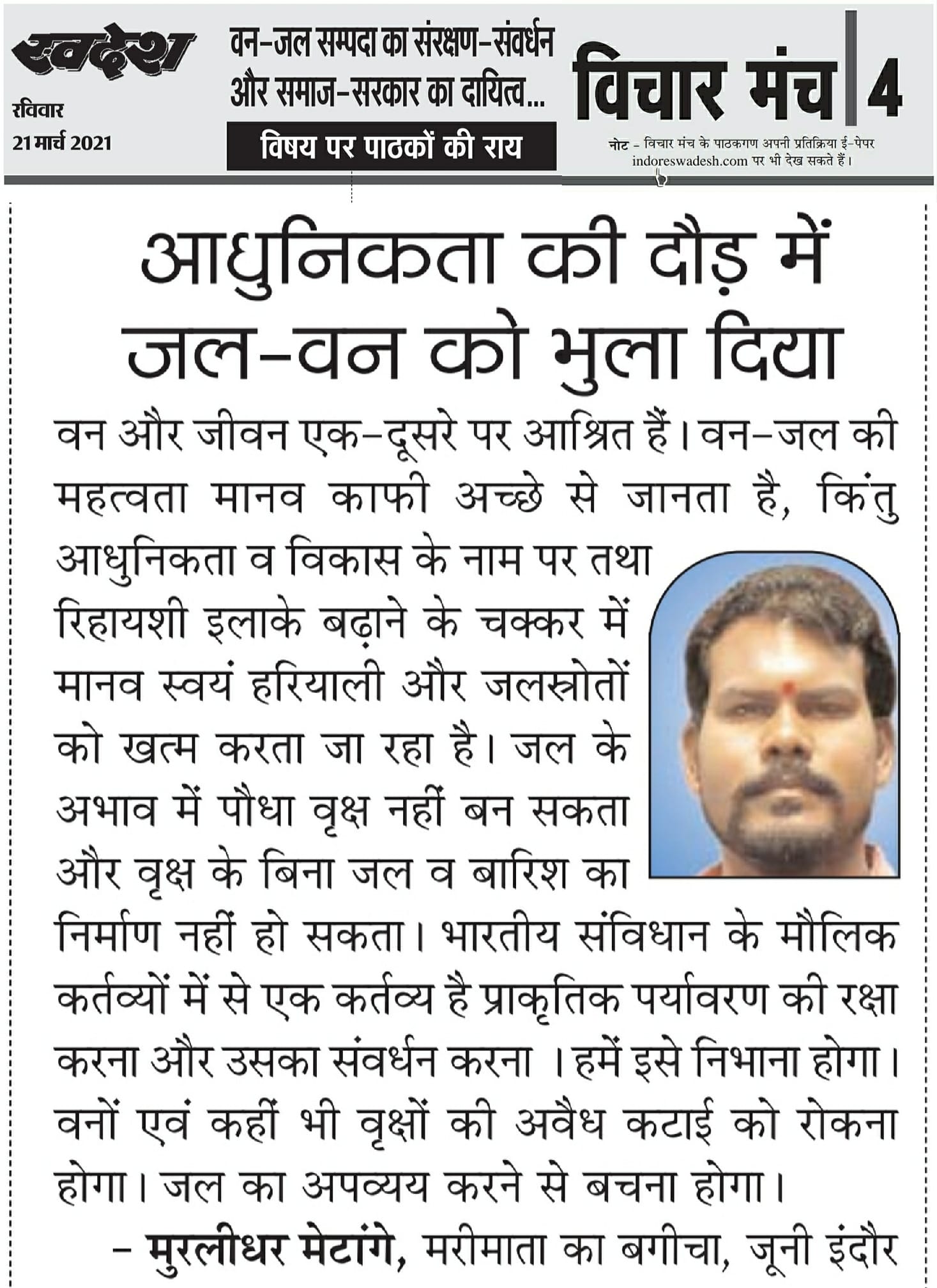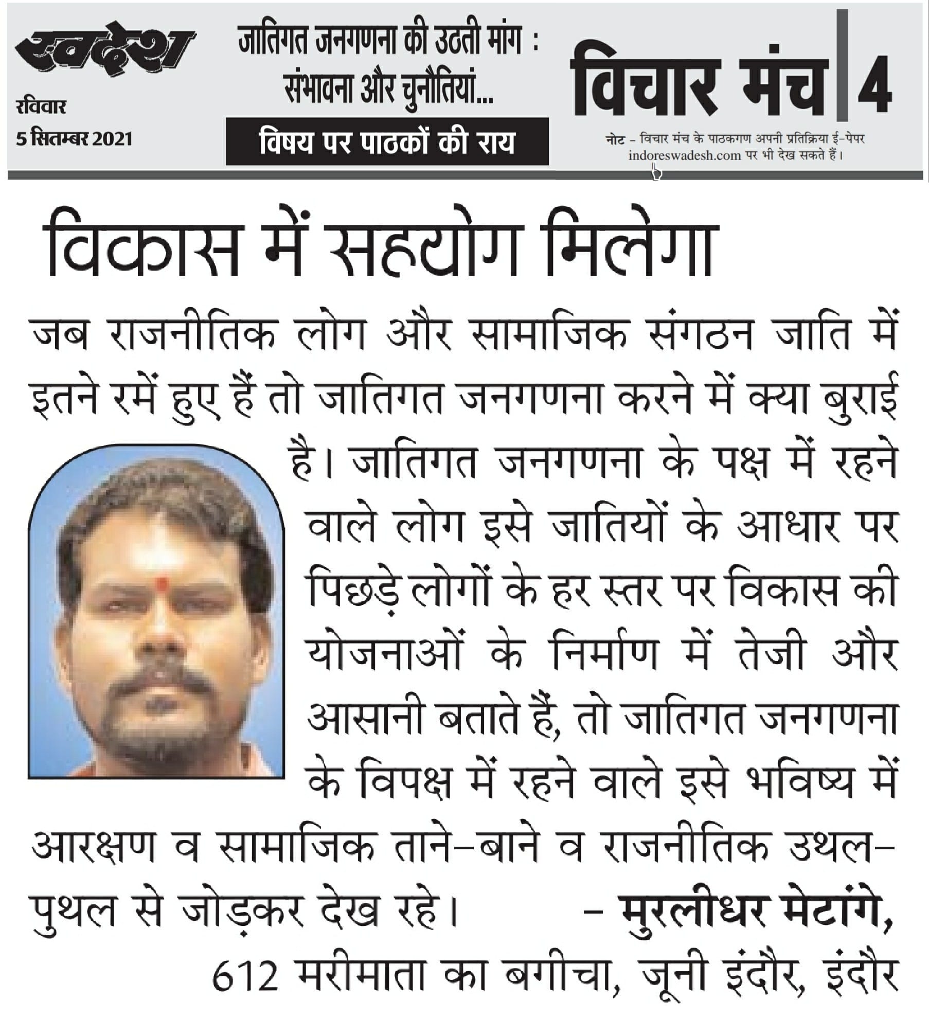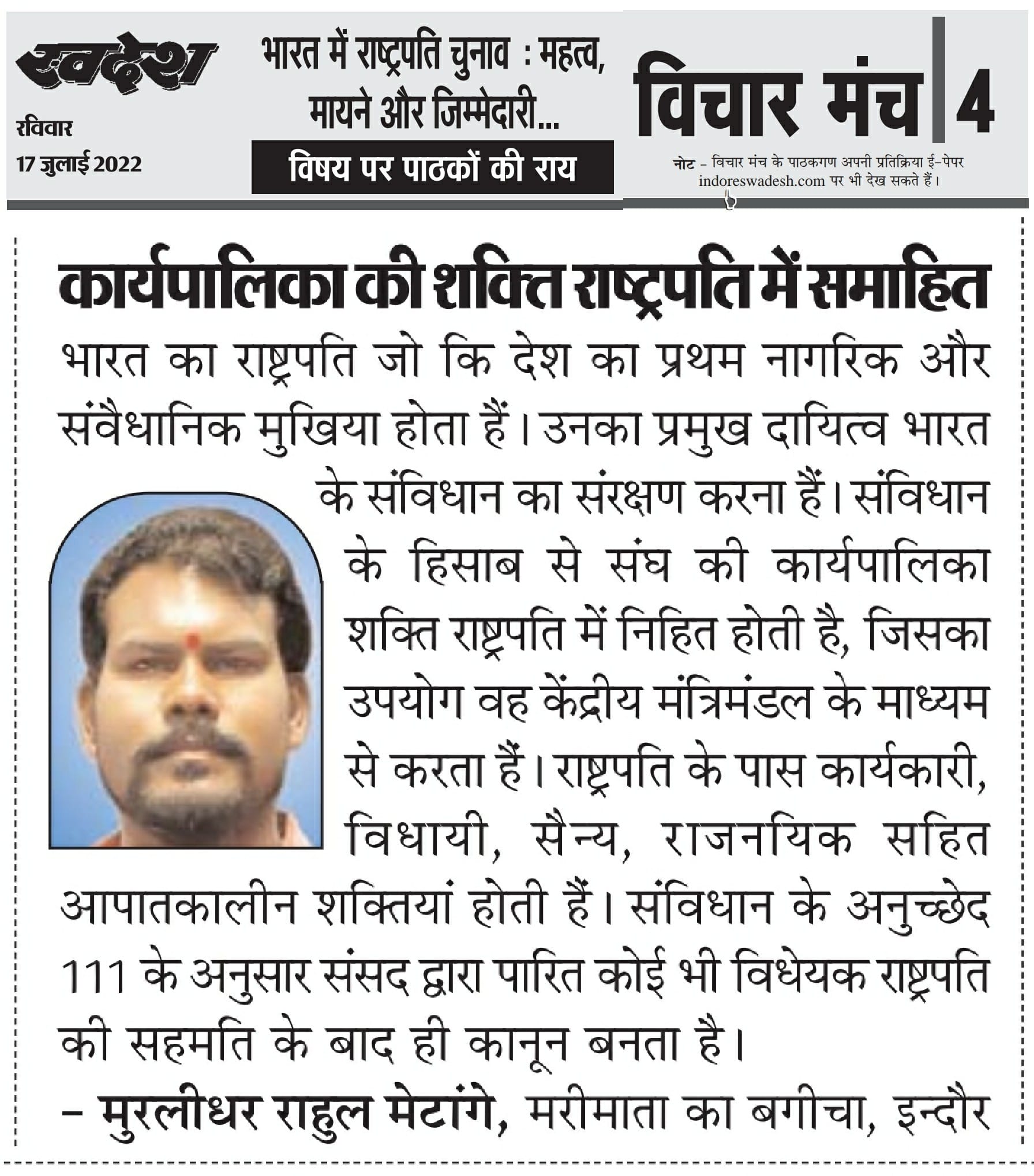 स्वदेश न्यूज़ पेपर में प्रति सप्ताह अलग-अलग विषयों पर सामाजिक कार्यकर्ता मुरलीधर राहुल मेटांगे द्वारा अपने विचार प्रकट किये गए । जो इस प्रकार है ।
