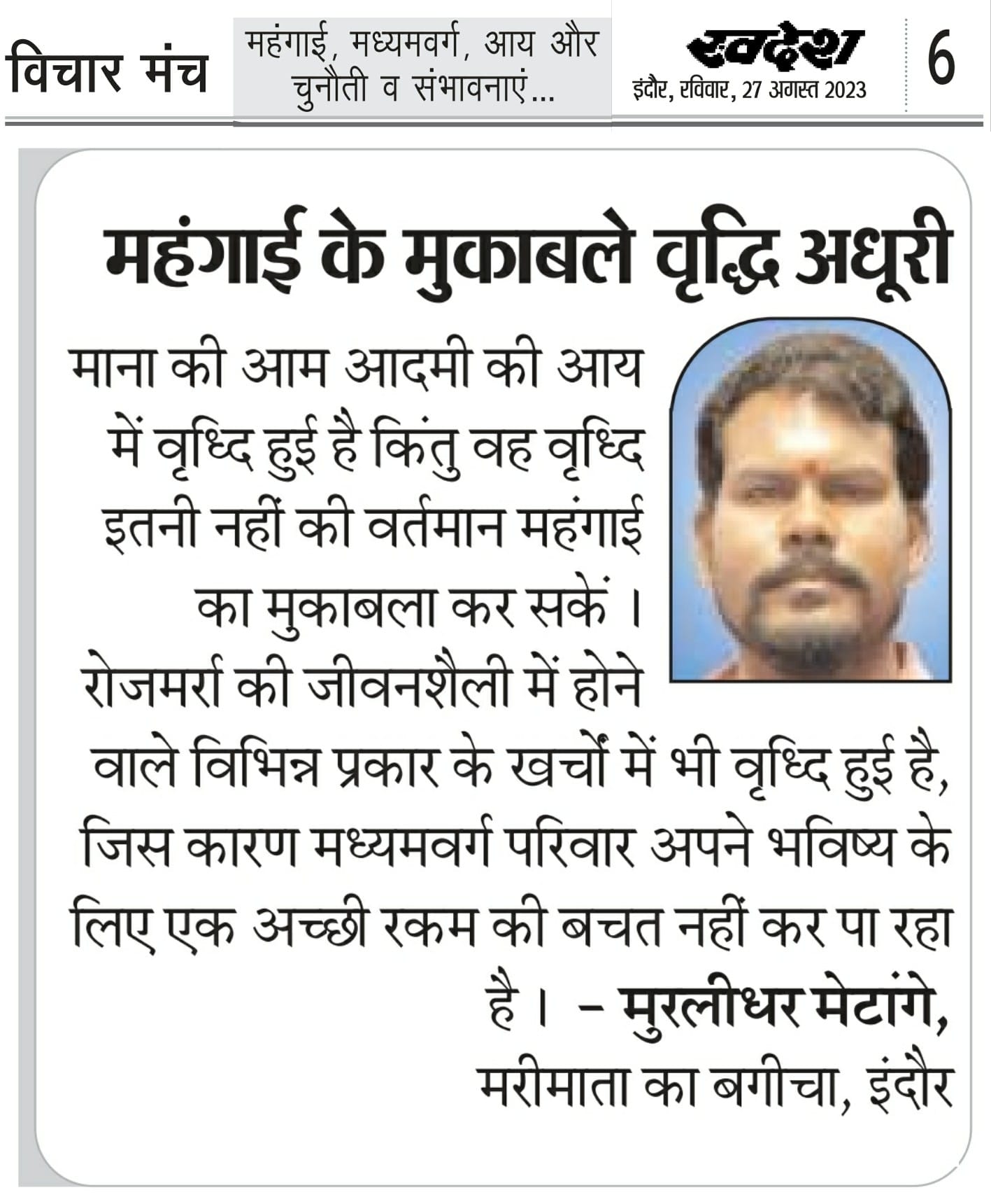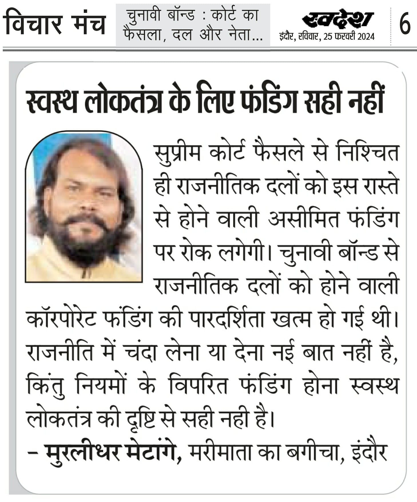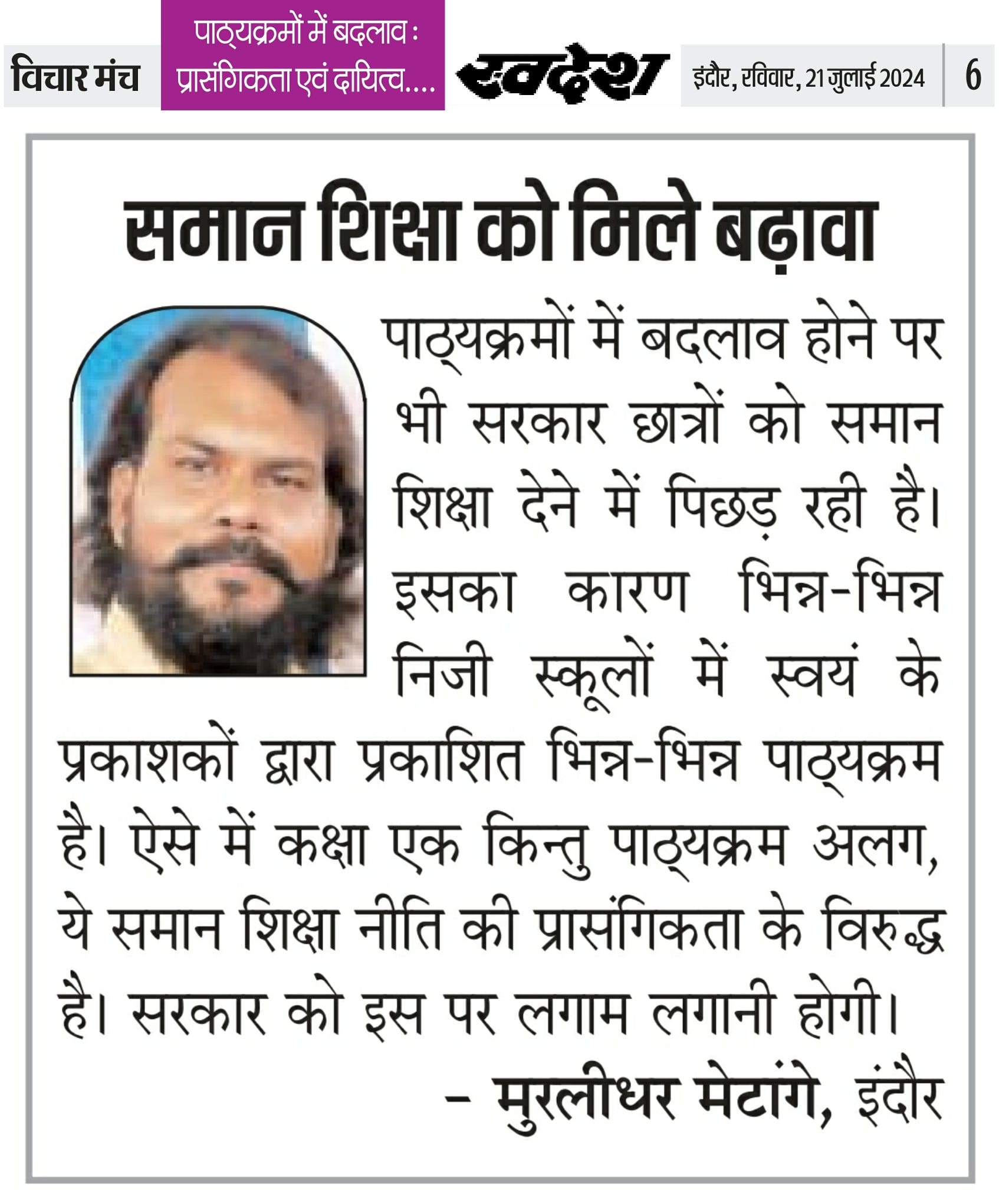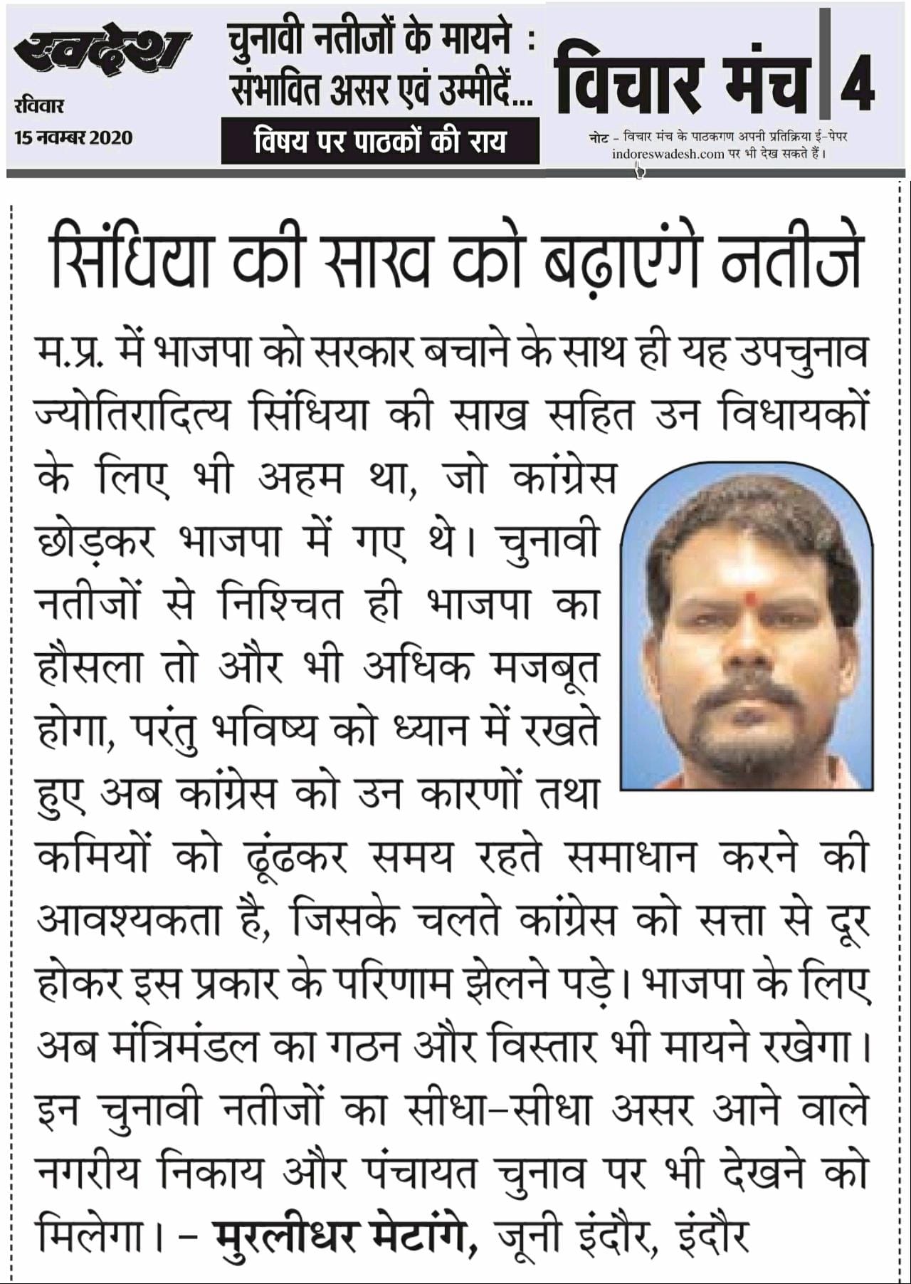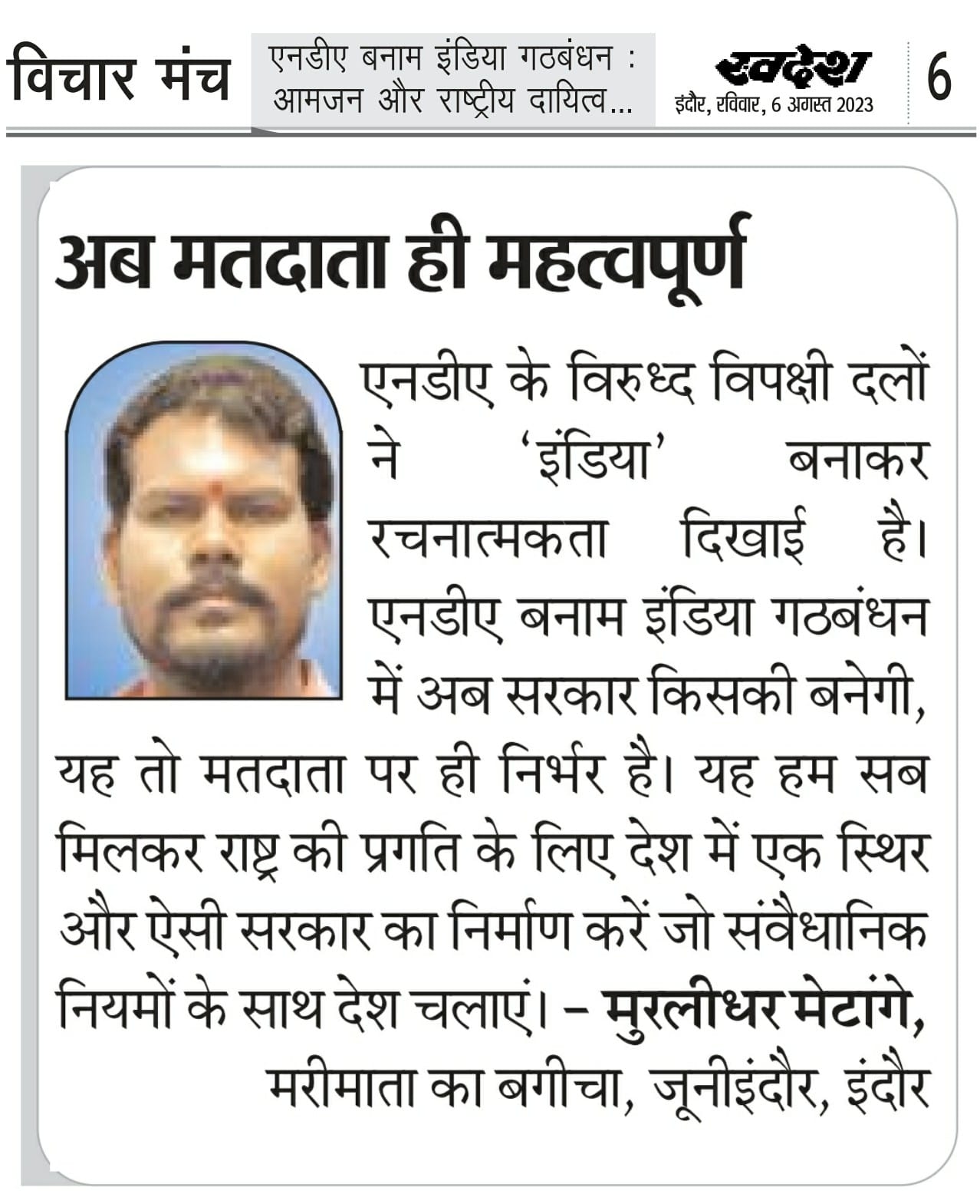 स्वदेश न्यूज़ पेपर में प्रति सप्ताह अलग-अलग विषयों पर सामाजिक कार्यकर्ता मुरलीधर राहुल मेटांगे द्वारा अपने विचार प्रकट किये गए । जो इस प्रकार है ।