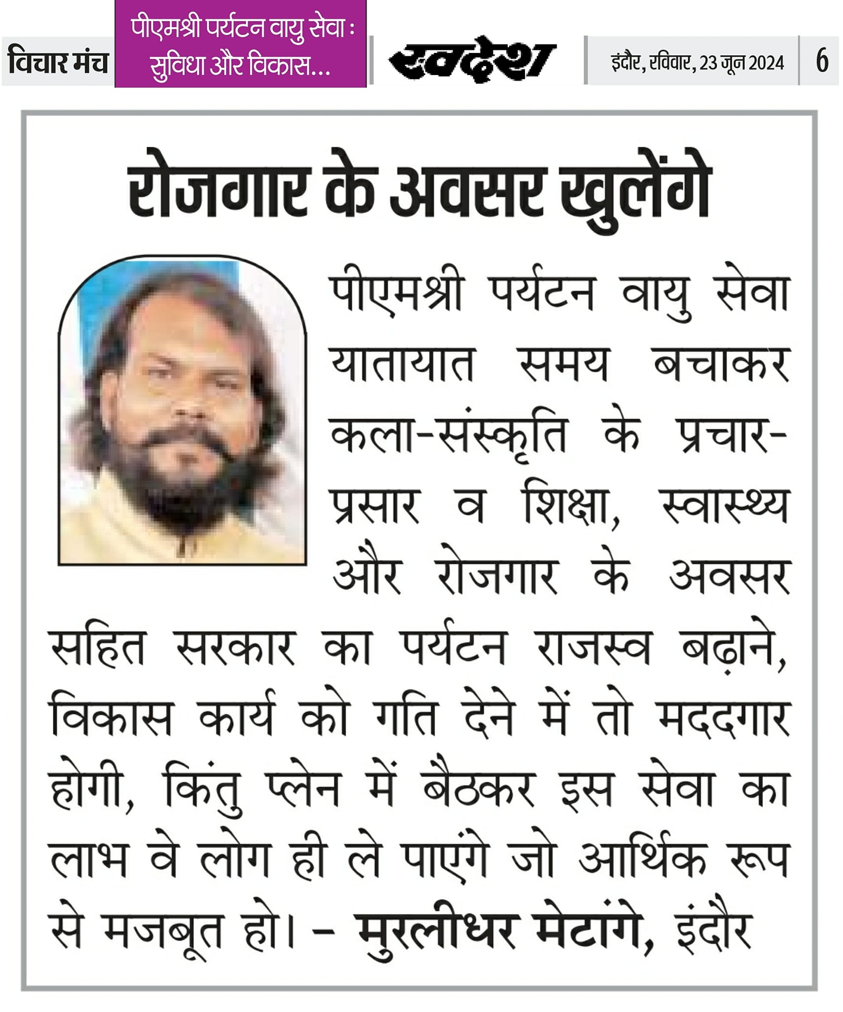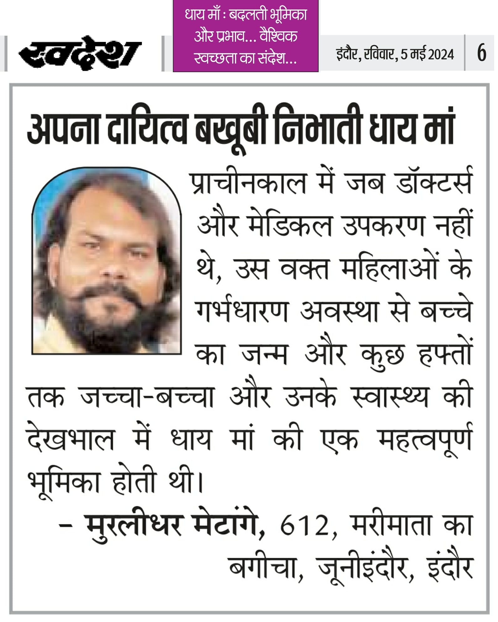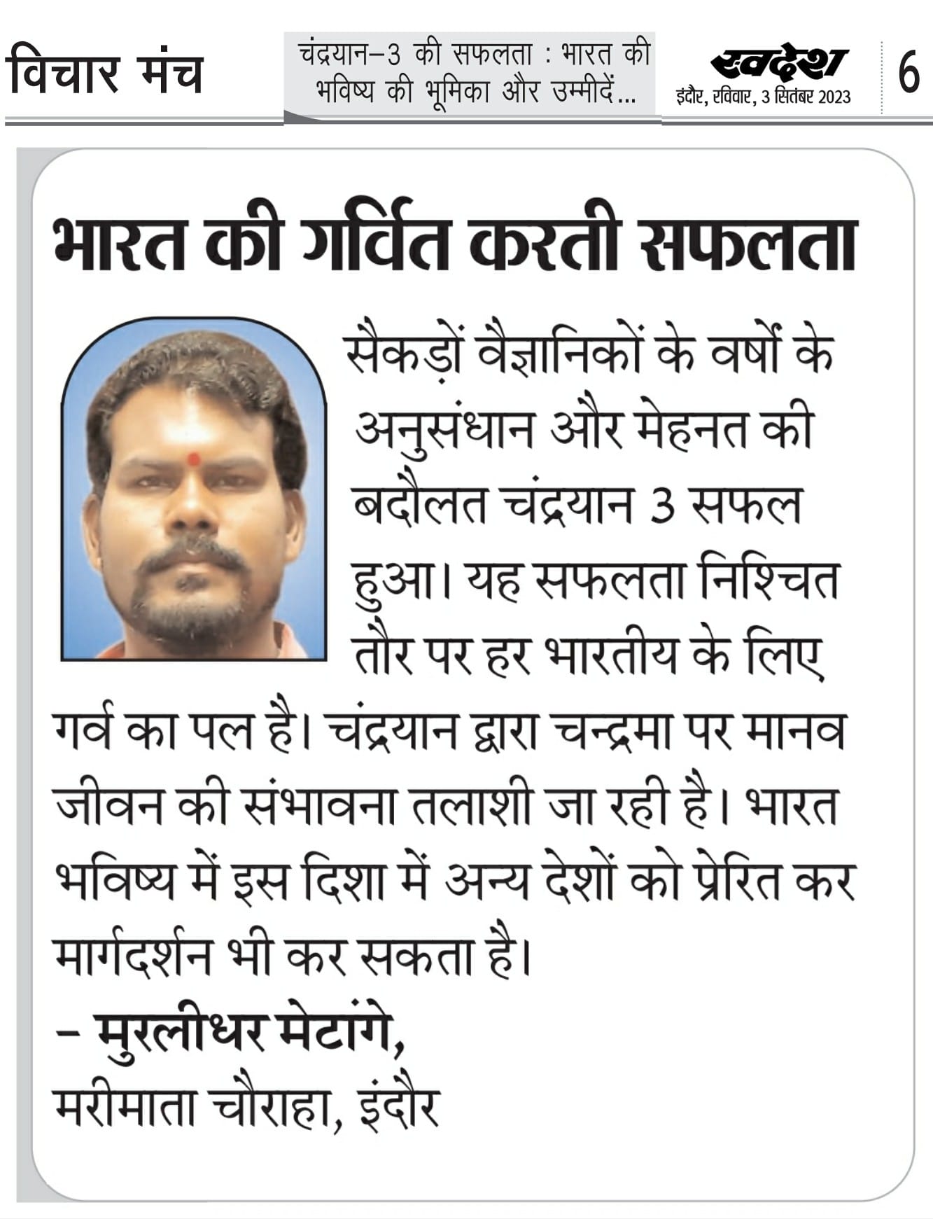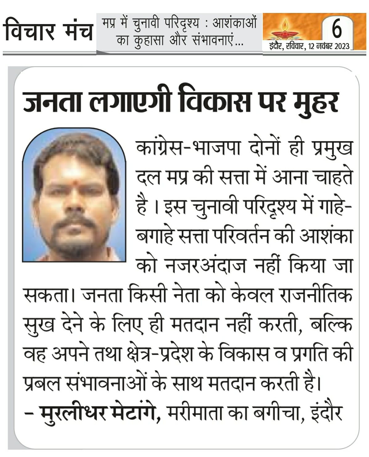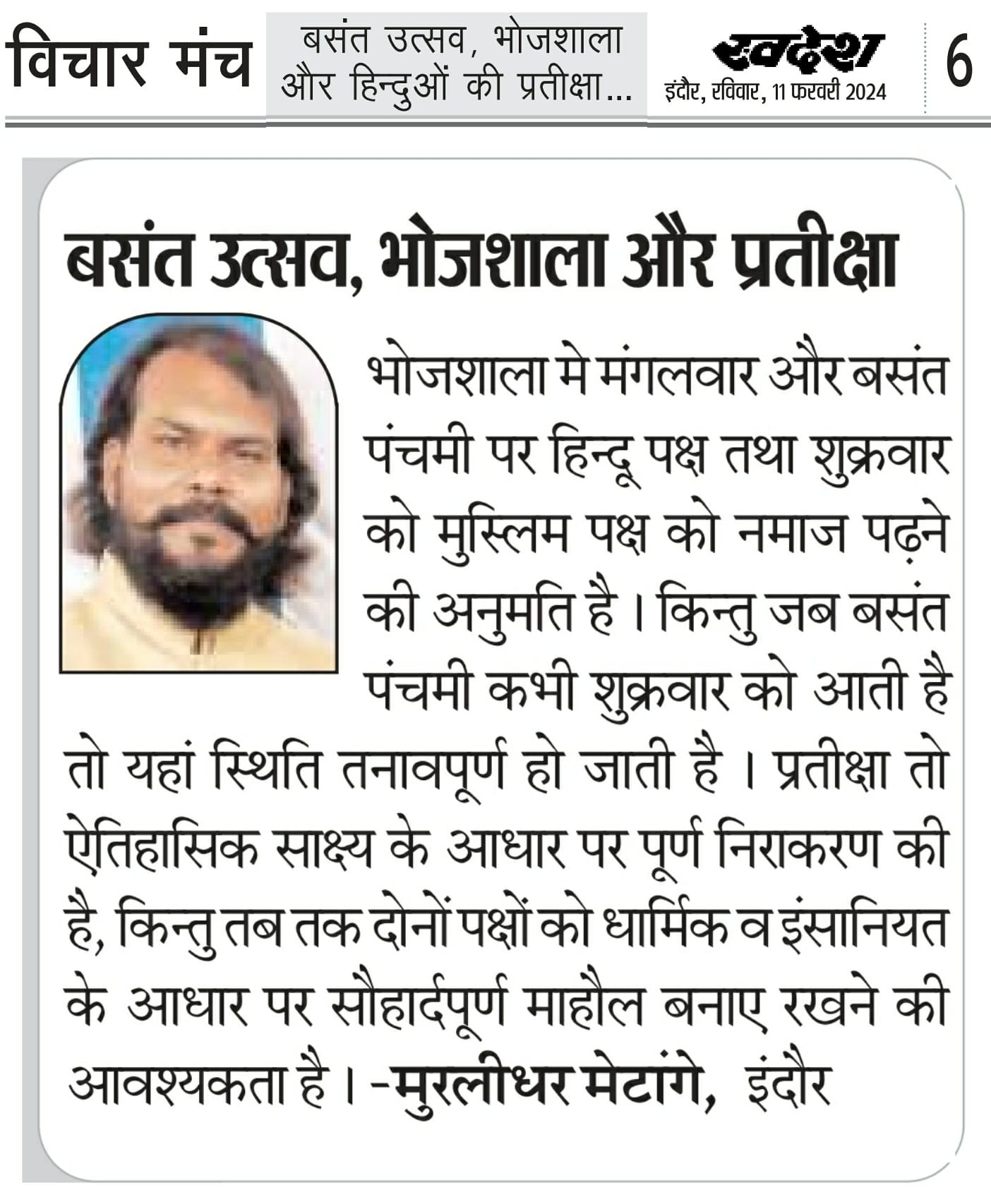 स्वदेश न्यूज़ पेपर में प्रति सप्ताह अलग-अलग विषयों पर सामाजिक कार्यकर्ता मुरलीधर राहुल मेटांगे द्वारा अपने विचार प्रकट किये गए । जो इस प्रकार है ।