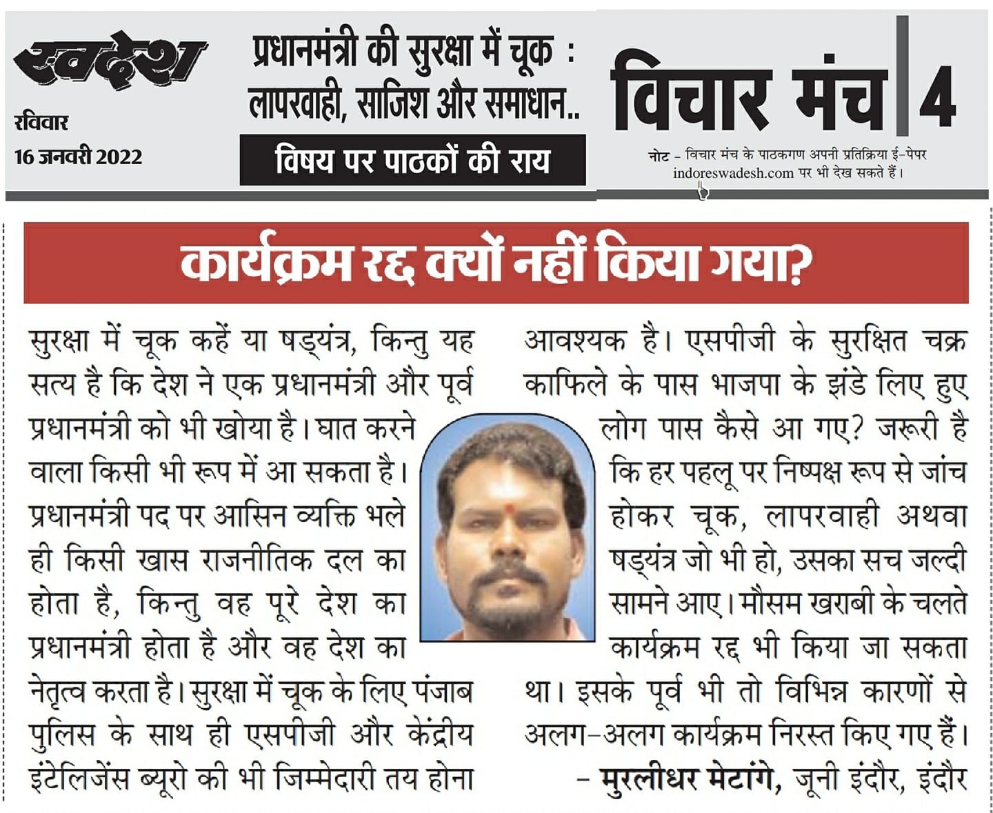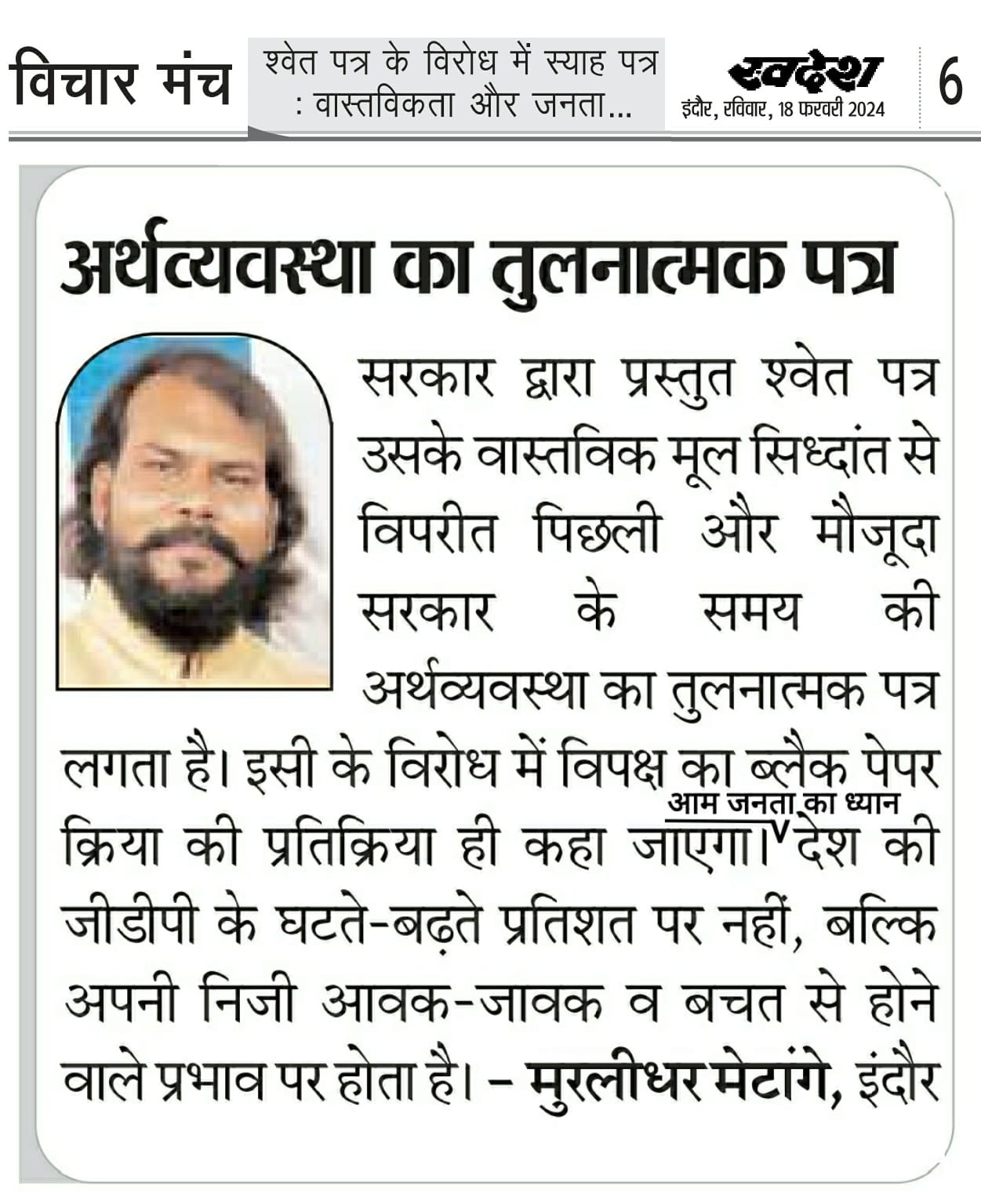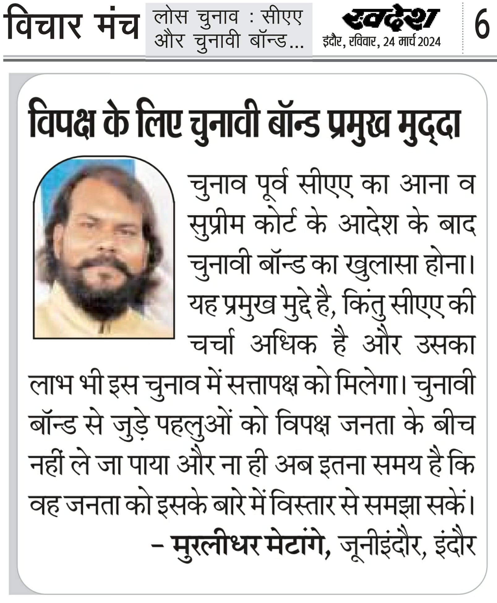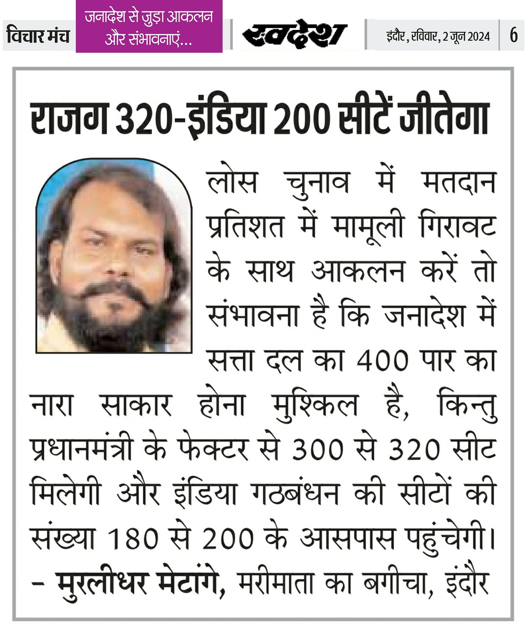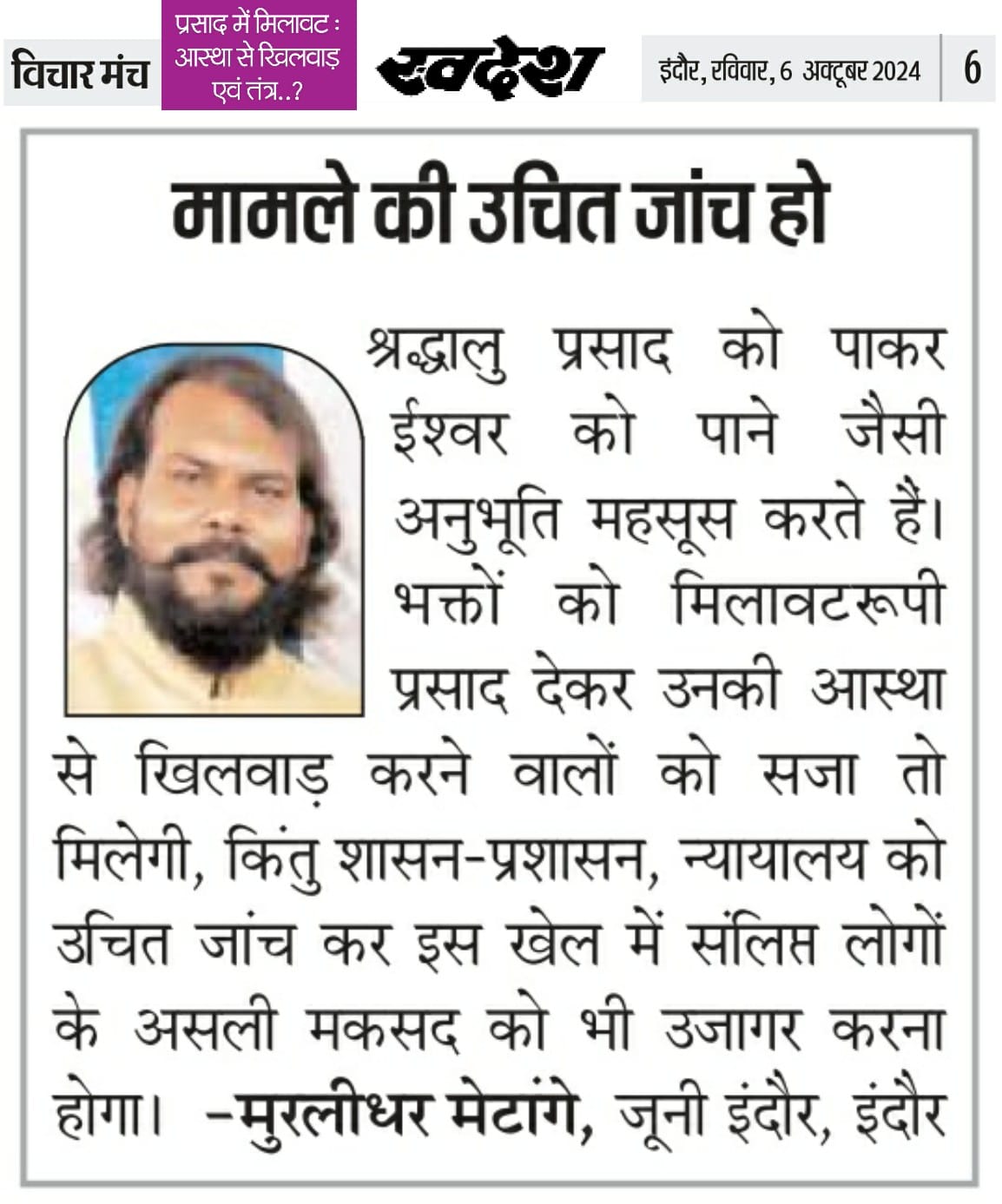 स्वदेश न्यूज़ पेपर में प्रति सप्ताह अलग-अलग विषयों पर सामाजिक कार्यकर्ता मुरलीधर राहुल मेटांगे द्वारा अपने विचार प्रकट किये गए । जो इस प्रकार है ।