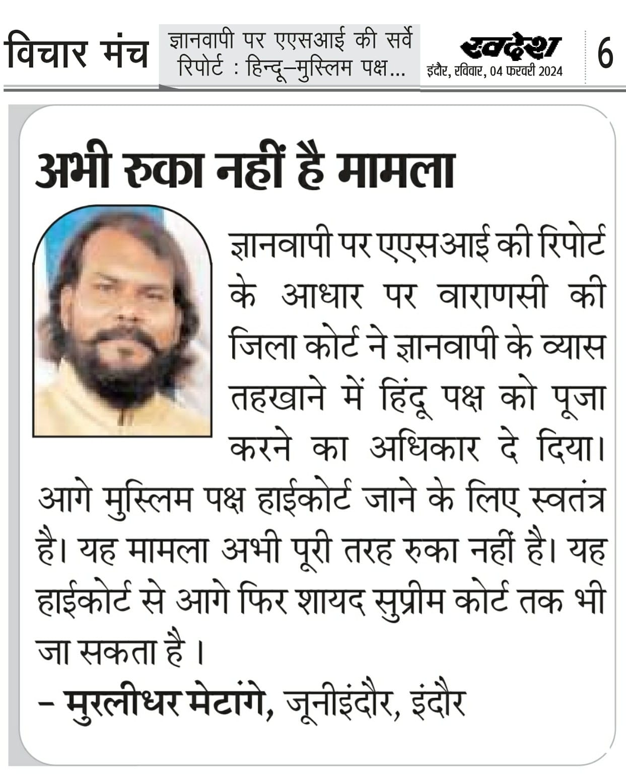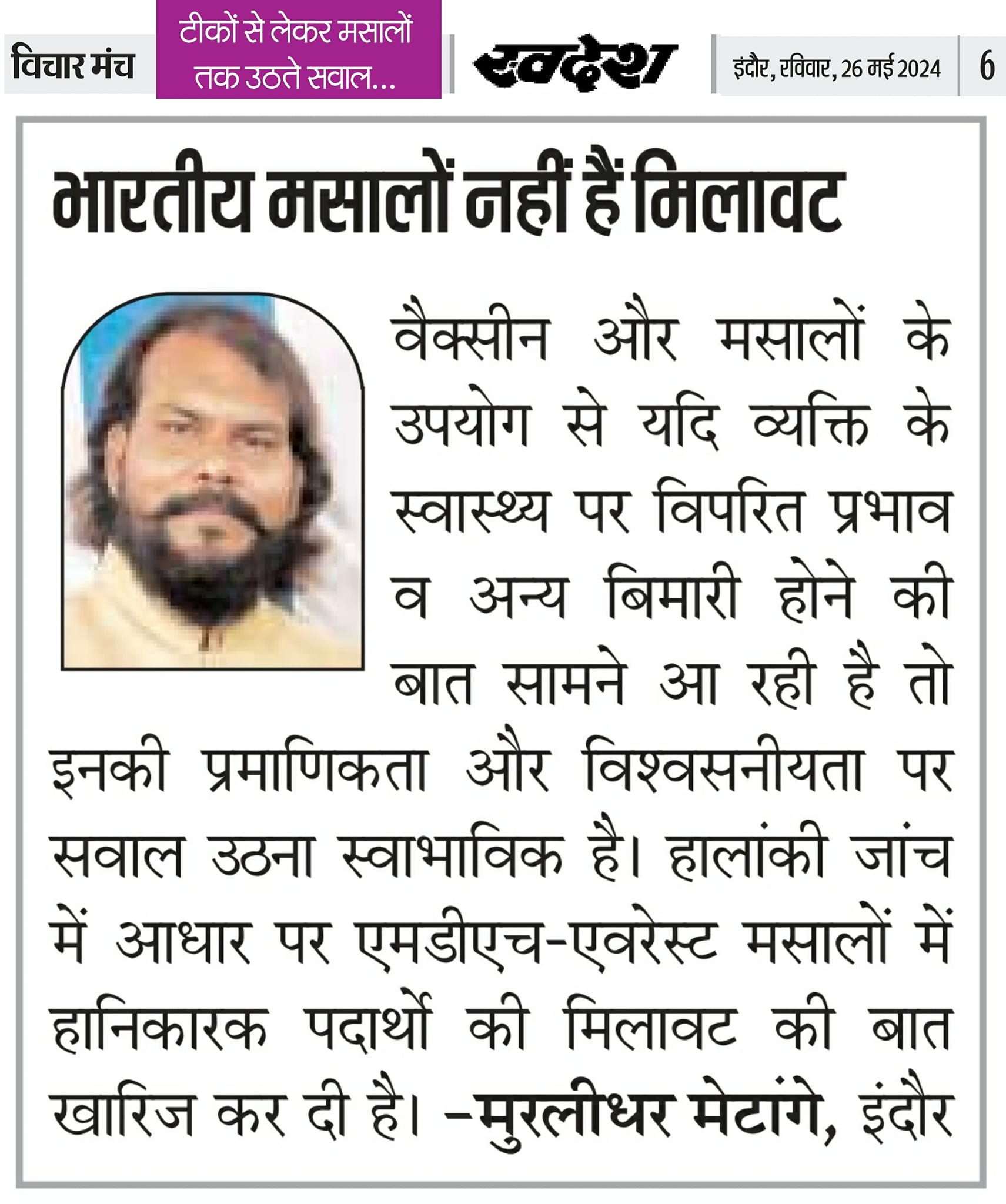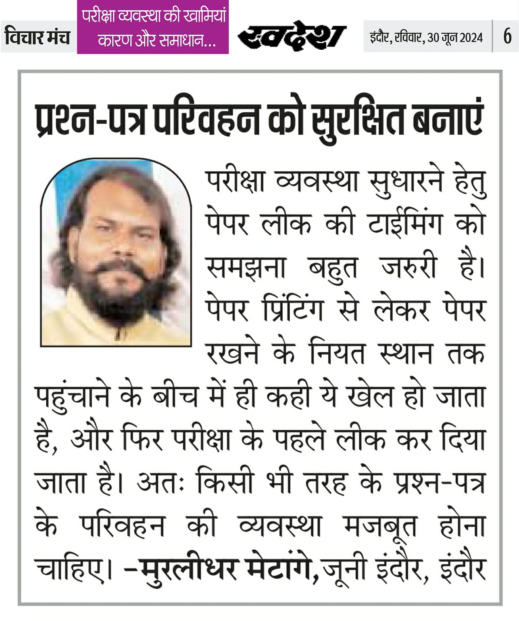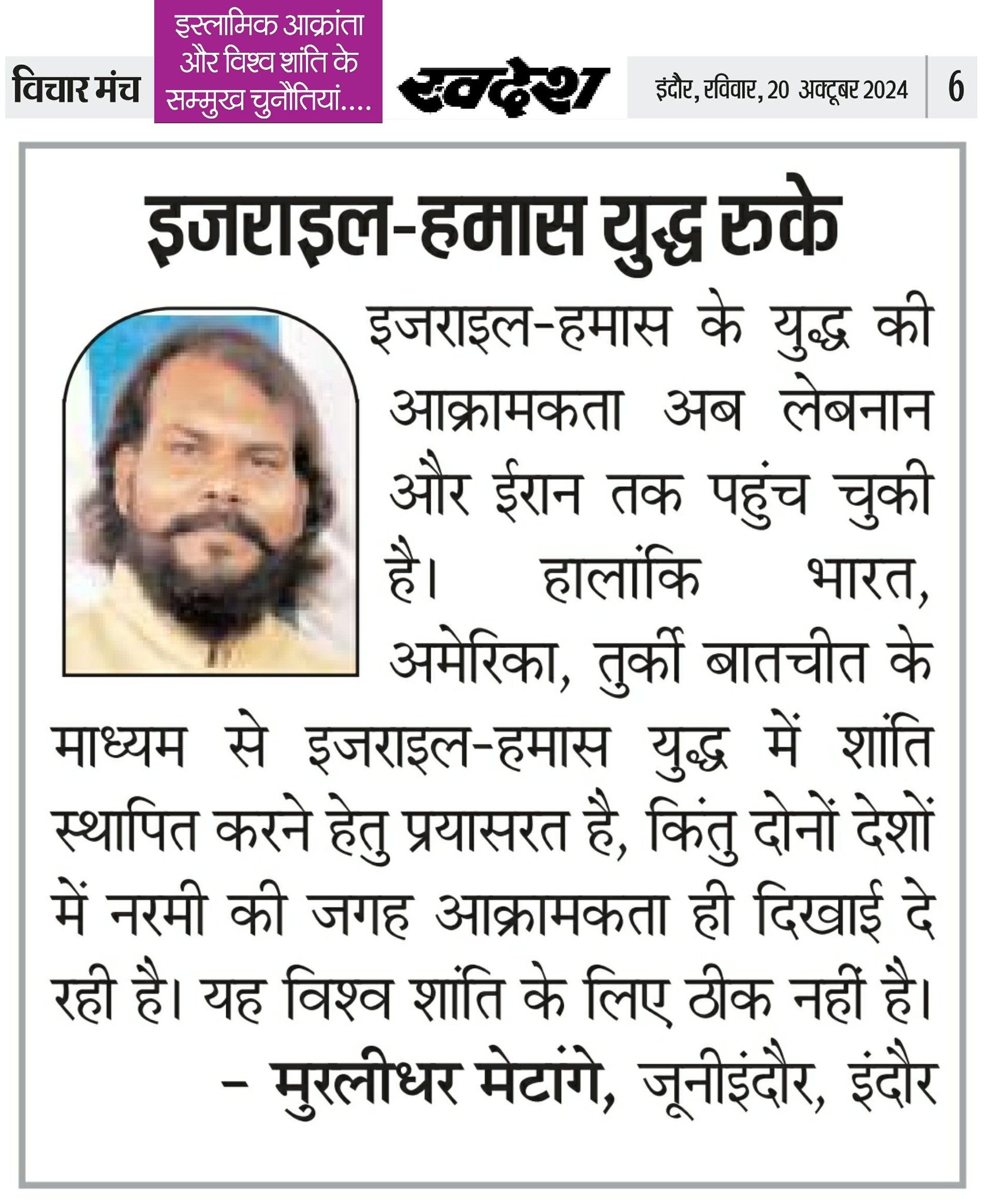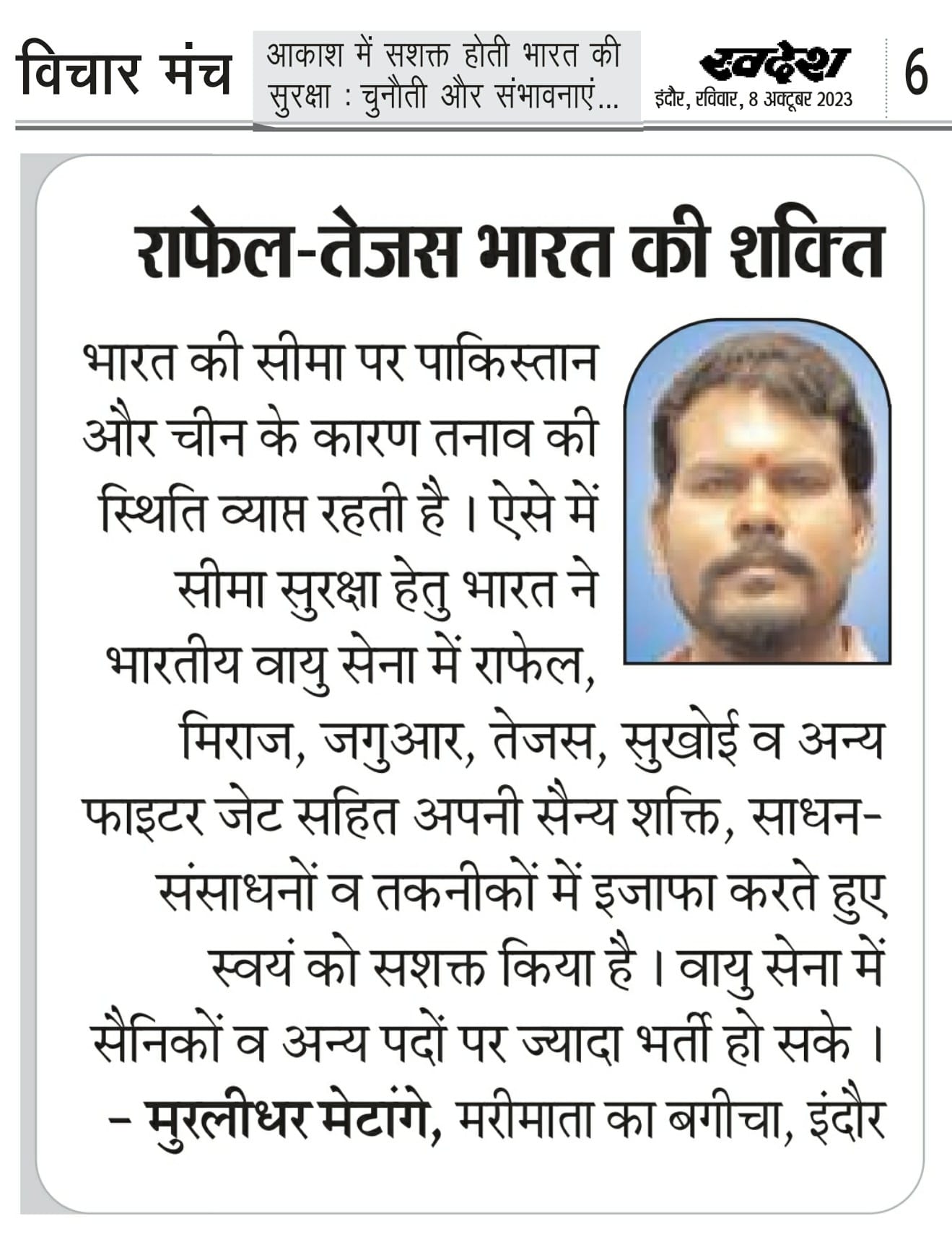 स्वदेश न्यूज़ पेपर में प्रति सप्ताह अलग-अलग विषयों पर सामाजिक कार्यकर्ता मुरलीधर राहुल मेटांगे द्वारा अपने विचार प्रकट किये गए । जो इस प्रकार है ।